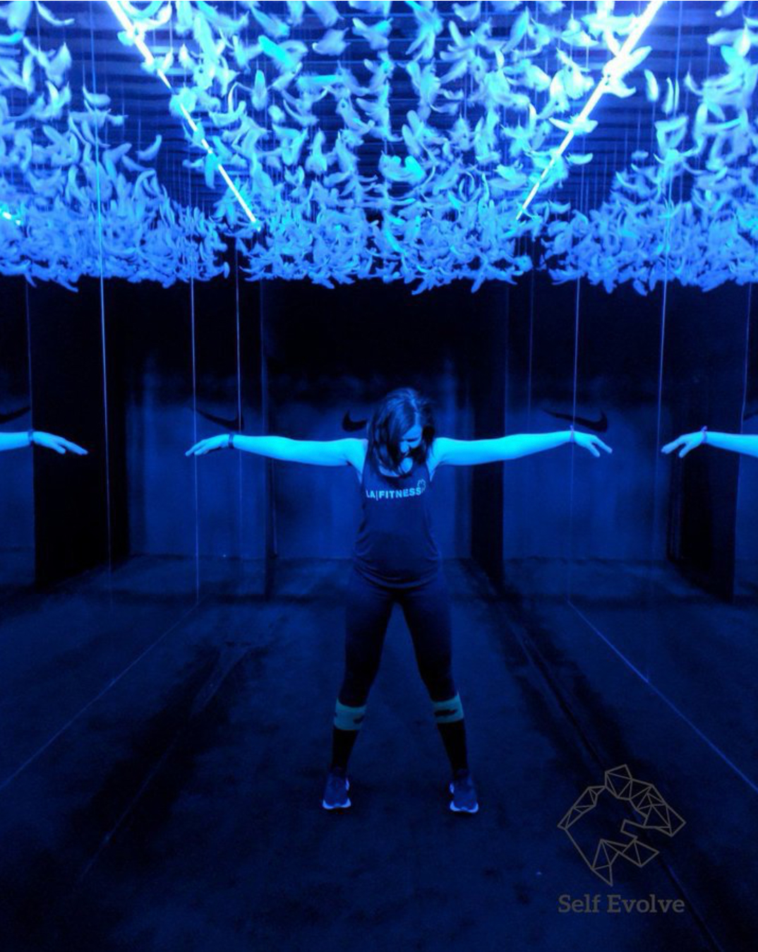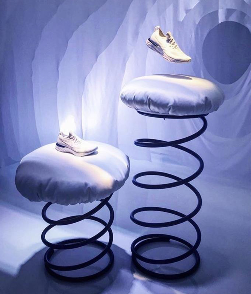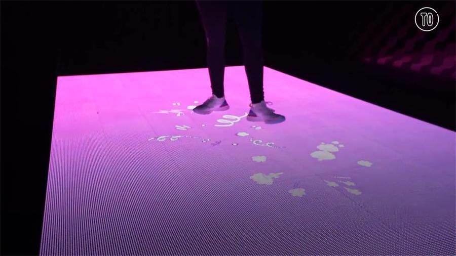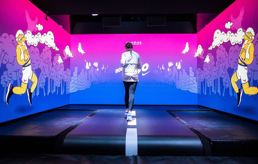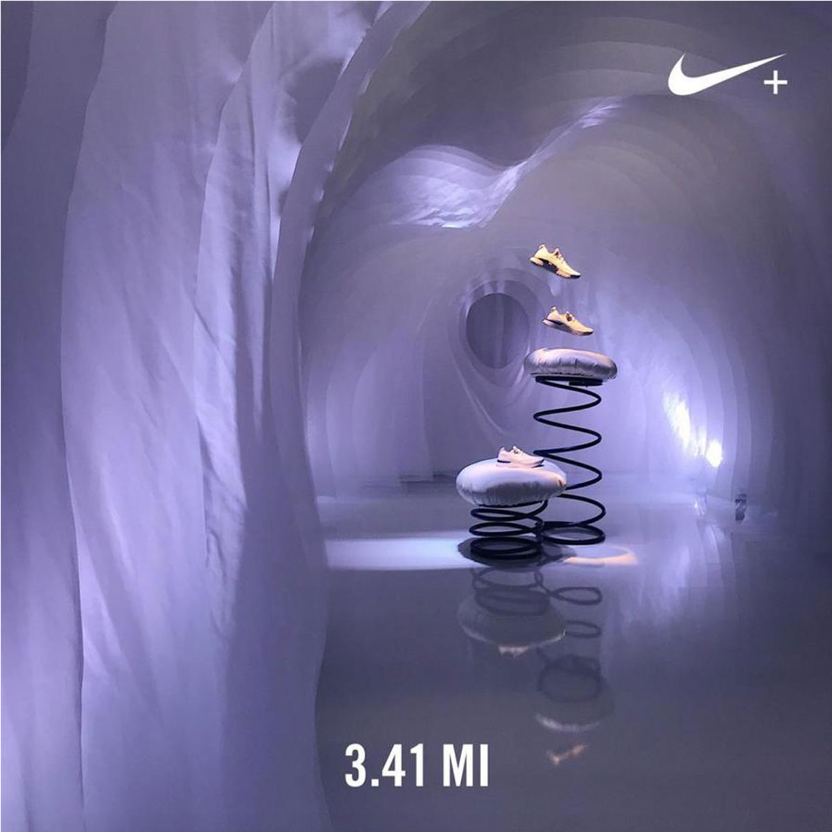 活动中客人们可以全面感受耐克最新的Epic React系列跑鞋。一个“互动的数字地板”可以对你的脚步产生反应。一个满是羽毛和镜子的过厅,吸引了客人们在这里自拍。在一个充满创意的数字床垫前蹦蹦跳跳。最令人吃惊的是这里有一台高科技跑步机,它的四周是三个巨大的屏幕,在慢跑前,你可以选择一个卡通人陪你一起跑步,屏幕上的卡通人物会根据你的动作做出反应。所有用户都可以穿着全新的Epic React Flyknit跑鞋在跑步机上体验。新的跑鞋被比作“熊猫枕头”和“弹簧高跷”,一个专门设计的体验装置告诉你为什么会有这样的比喻。这里最具设计感的展示区是超现实主义的设计风格,弹簧的运用是为了不断提示客人,跑鞋的柔软与弹性。除了这些,你也可以报名参加耐克跑步机工作室的免费健身课程,在教练指导下的45分钟训练将测试你的耐力。