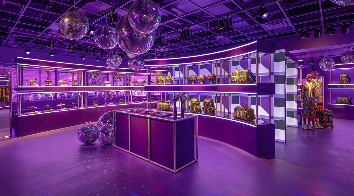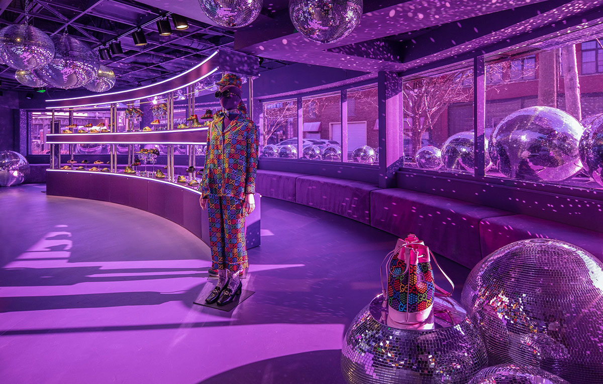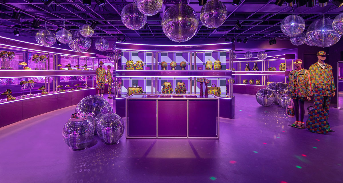 GUCCI 古驰快闪店位于芝加哥,开放至3月底,其中设计大量使用#GGPsychedelic 元素,怀旧氛围浓重,不管是立体设计还是迪斯科灯球都让空间充满复古气质。原文说保留了1970年代迷幻精神,并邀请游客进入梦幻般的夜总会。