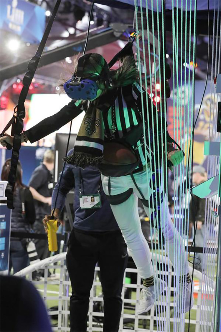你是否曾经从飞机上跳下来,跳伞进入梅赛德斯-奔驰球场,在数万名欢呼的球迷面前降落在球场上,并递上超级碗比赛用球? 如果你在第五十三届超级碗大赛期间访问了位于亚特兰大的CBS体育网络品牌激活空间,你就有机会体验一下,而这种4D VR体验也深受客人们的欢迎。