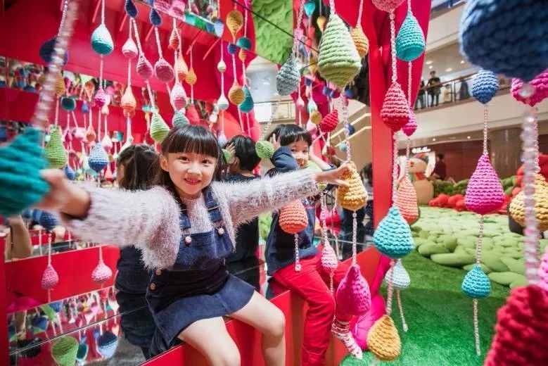 成长于温暖国度的巴西艺术家Anne Galante首赴海外手作艺术装置,为大家送上暖暖的心意。位于港威商场大堂II的小花园,Anne即场编织了软绵绵的草地及5米高的大树,让大家躺卧在长椅子上欣赏色彩缤纷的花园布置,享受悠然时刻。大树旁的巨型冷球内垂挂着一串串色彩缤纷的小冷球,映照在两边墙身的镜子中,让您犹如置身于梦幻的花花世界。Anne同时于海运大厦地下中庭为小朋友带来700平方尺大的游乐场,即场编织了草地及“毛冷”波波池。小朋友可与一众动物及精灵朋友登上红白小火车通往游乐场,畅玩滑梯后潜进七彩波波池,在一片软绵绵的冷球中嬉戏,体验玩味十足的暖意。700平方尺大的游乐场,有草地及“毛冷”七彩波波池,颜色缤纷,小朋友实开心!