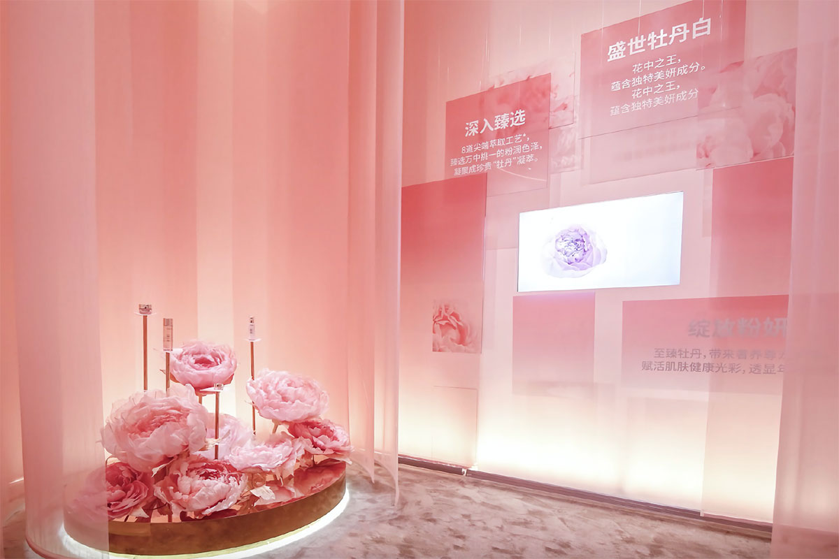 步入粉红空间,柔美灯光搭配3D牡丹造型,薄雾的温柔质感与唯美的粉红色花瓣在一动一静之间,带你体验牡丹粉妍浪漫梦幻。