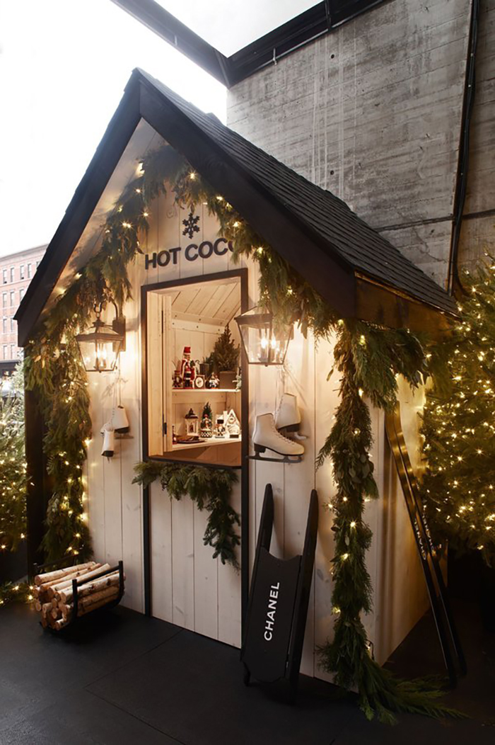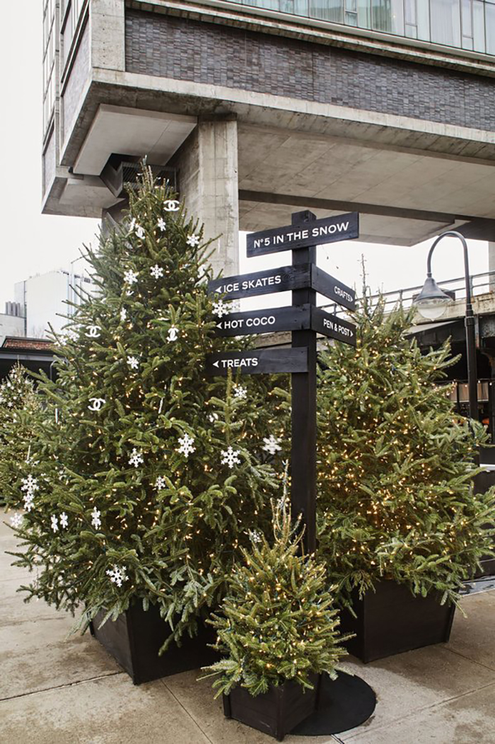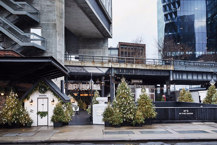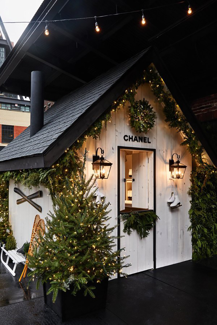 香奈儿在高线标准酒店举行了其冬季快闪体验活动“雪中的香奈儿5号”,活动现场将酒店转变成一个非常时尚的冬季仙境,现场设计得像别致的度假滑雪小屋,有很多树、花环和闪烁的灯光,还有精心摆放的溜冰鞋和香奈儿品牌的滑雪板、雪鞋和雪橇。每年,该酒店都会在这个季节开放其溜冰场,因此来到现场的客人们还可以滑冰,参加香奈儿香水派对品尝时令美食和热巧克力。