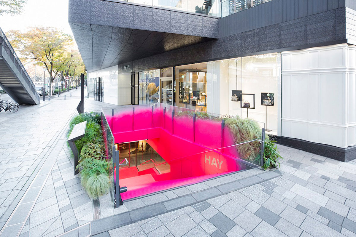要进入商店,顾客必须沿着一个原本不起眼的楼梯下降,该楼梯已被涂成粉红色。