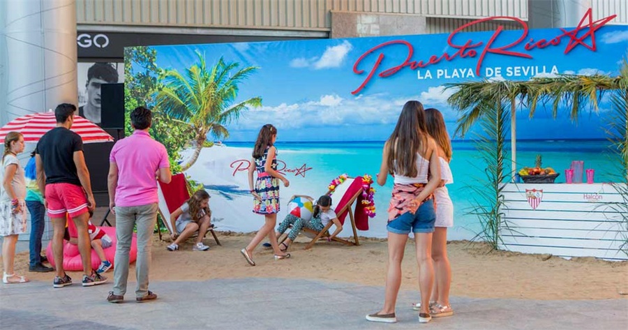 波多黎各是塞维利亚足球俱乐部的赞助商之一,在塞维利亚的主场拉蒙·桑切斯·皮斯胡安球场外举行了一场快闪式的街头营销活动。在几天的活动中一直在向大众潜移默化地灌输一个概念——“让我们梦想着置身于那个田园诗般独特的地方,在沙滩上喝一杯,让我们的皮肤沐浴在阳光中。”
