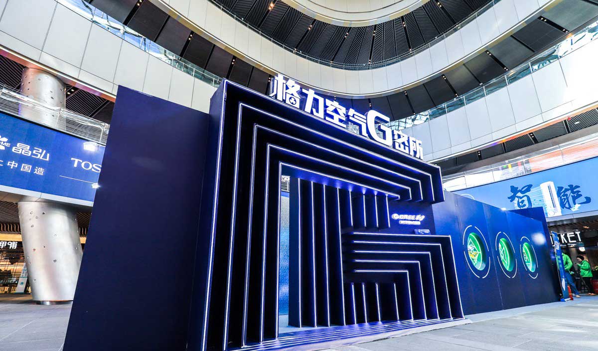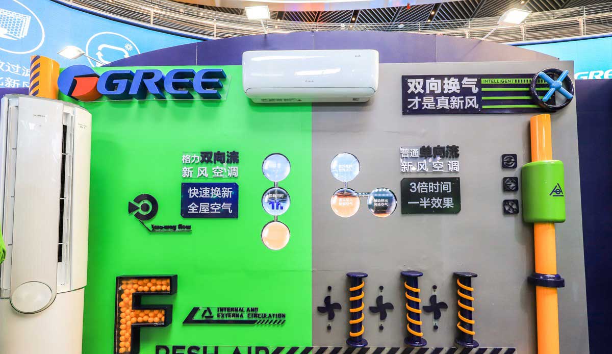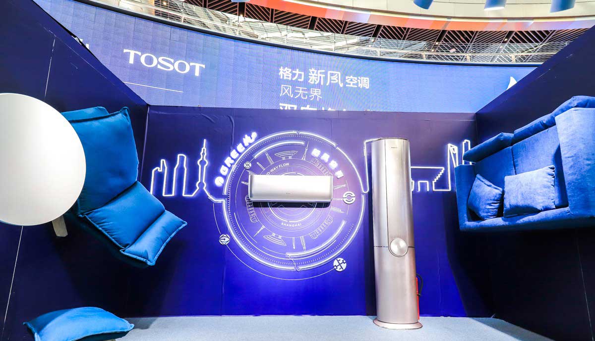 在产品展示区,格力已有的生活电器类以纯白色的形式展现,并融入绿植,简洁美观,用最直观的形式体现出产品的健康无害,传递品牌的健康理念,打造出人们所追求的健康理想生活,同时体现格力产品多元化的特点。