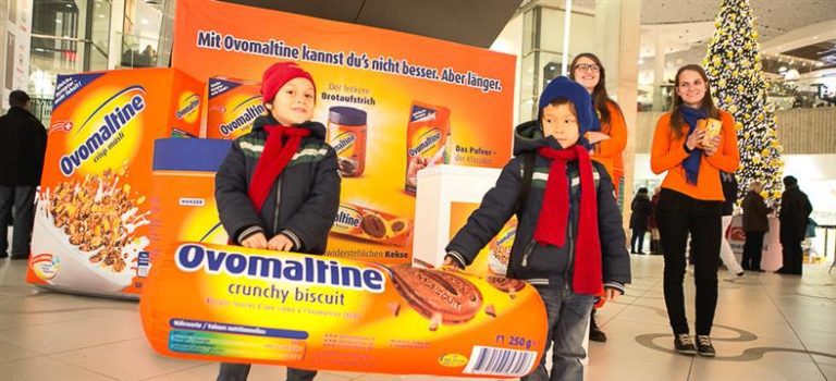 阿华田街头快闪店推广活动成本低,覆盖面却很广,而且持续的时间也很长,阿华田这场街头快闪店推广活动单在奥地利全国就持续举办了3年以上,推广覆盖面很广,达到的效果也很理想。