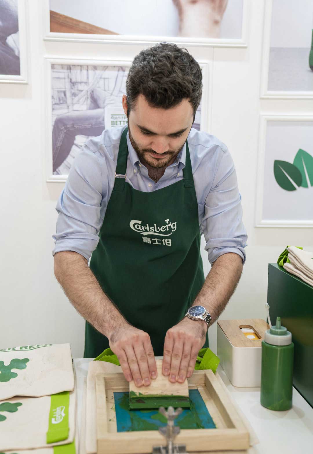 焕新升级后的嘉士伯啤酒外包装首次使用了cradle-to-cradle认证的绿色环保油墨,体现品牌对环境友好的坚持。嘉士伯此次在活动现场为消费者特别提供了环保油墨DIY体验,鼓励消费者从日常小事做起,“袋”走环保,通过绿色环保油墨的丝网印刷,亲手为自己制作独一无二的专属环保袋,把环保变成一种艺术。