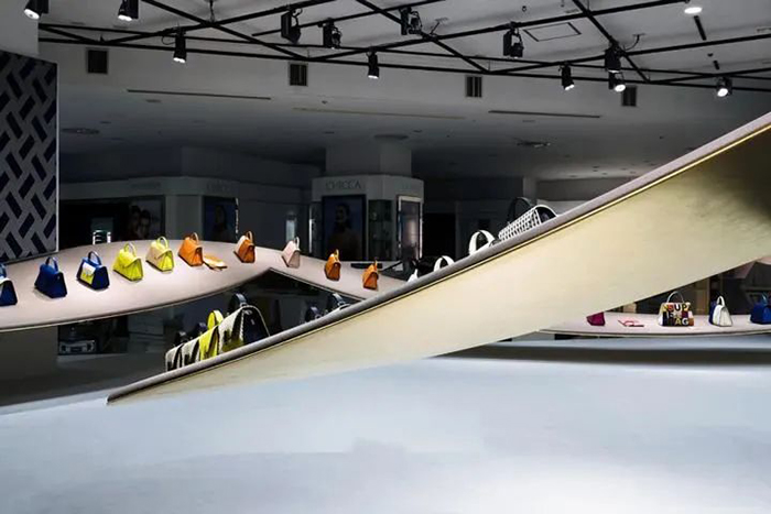 东京——在东京一家著名的百货商店里,你有一个位置来推销价值3000美元的皮包,而你只有五天的时间来抢尽风头。对于年轻的日本建筑师Shingo Masuda和Katsuhisa Otsubo来说,来自Valextra的挑战是一个机会,它打破了传统封闭空间的零售店内概念。他们想要一个“感觉并传达品牌真正意图”的地方,而不是传统的pop-up精品店——在一个定义明确的区域,标签之间通常是严格分开的。
