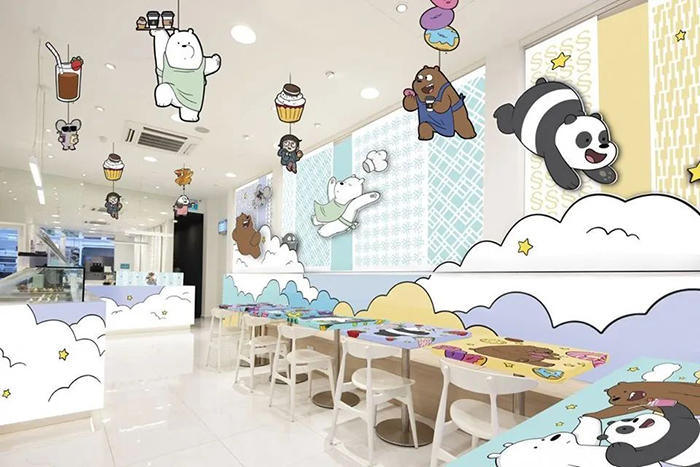 世界上第一个主题We Bare Bears Cafe快闪咖啡店将于2020年1月4日在新加坡营业,We Bare Bears x Kumoya主题快闪咖啡厅内部装潢以超可爱的 We bare bears为设计主题。Kumoya针对这次与 We bare bears联名的活动也是相当用心,从店面外观,到店内的餐桌、餐椅、墙壁、挂饰,全店上上下下,里里外外都都可看到三只熊的影子。