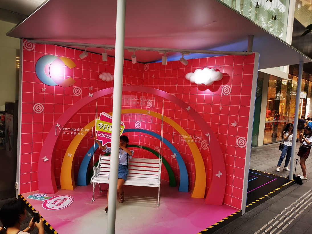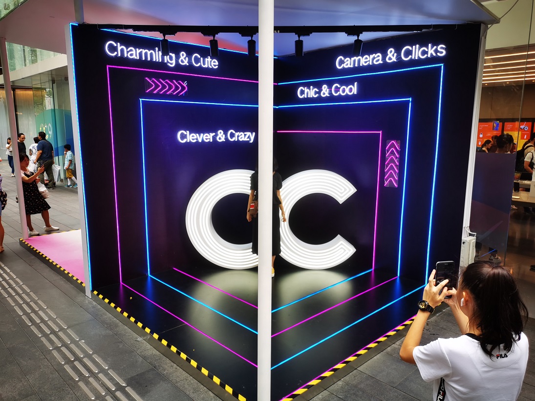 小米CC9主打3200万+4800万前后双旗舰相机,在全国21家门店制作了潮流拍照打卡点。篷房的搭建,两个空间相互背向,一侧是热烈,一侧是理性,潮流打卡点就是要让你拍出你的C位之美。