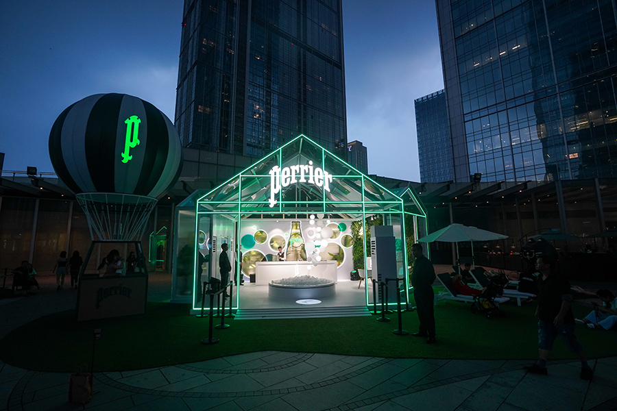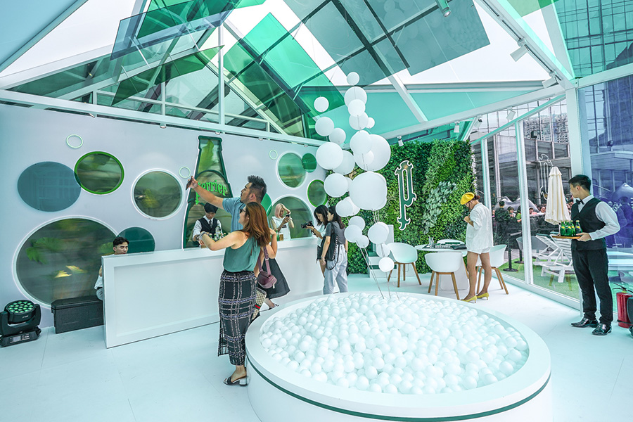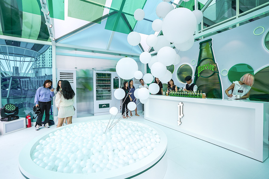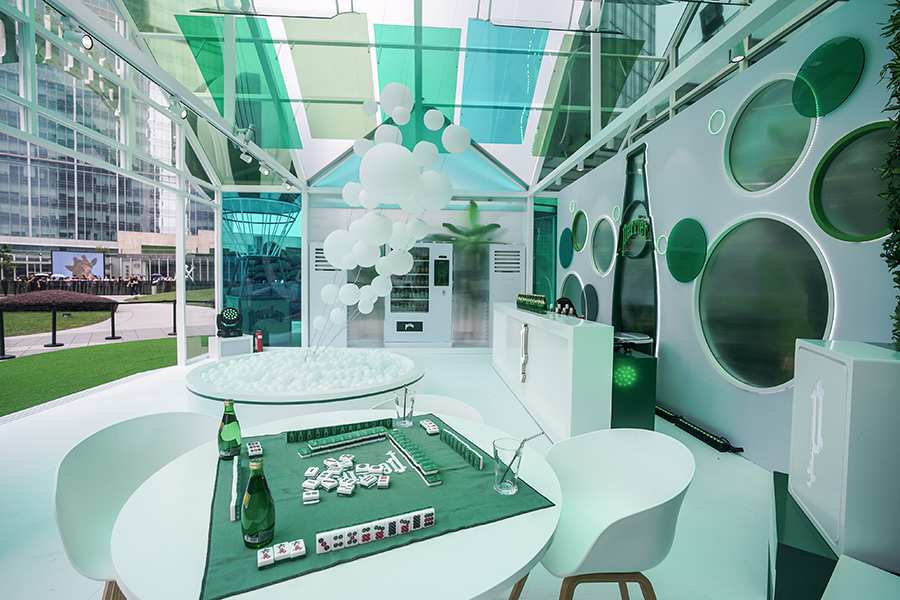 Perrier 巴黎水“Green House”体验空间以其标志性的绿色和气泡打造出了个性鲜明的互动创意空间,还不忘加入成都的麻将特色,真够巴适的。