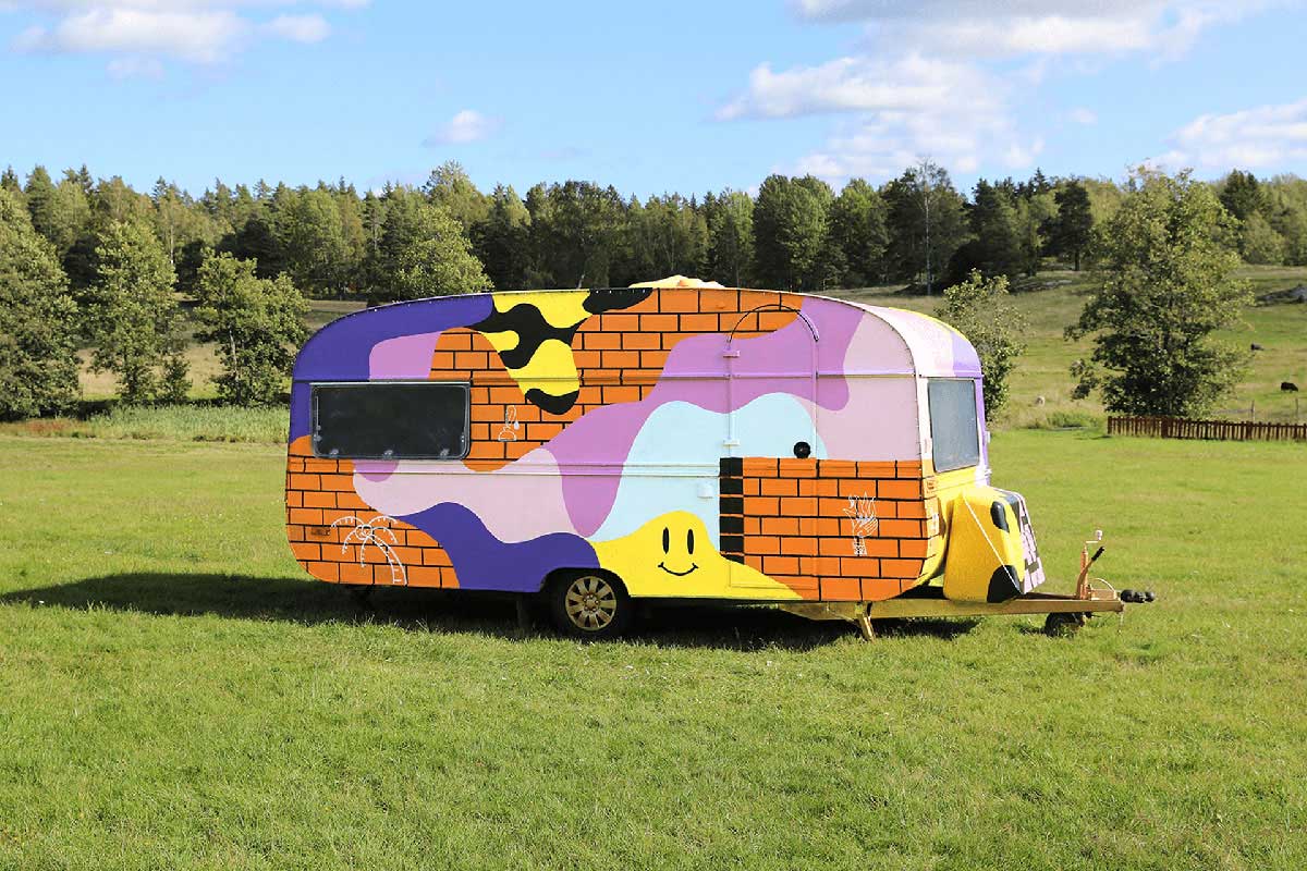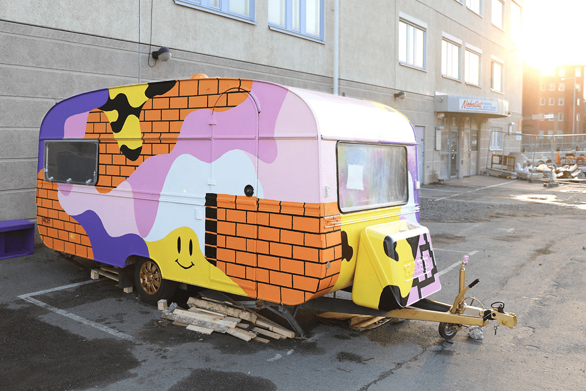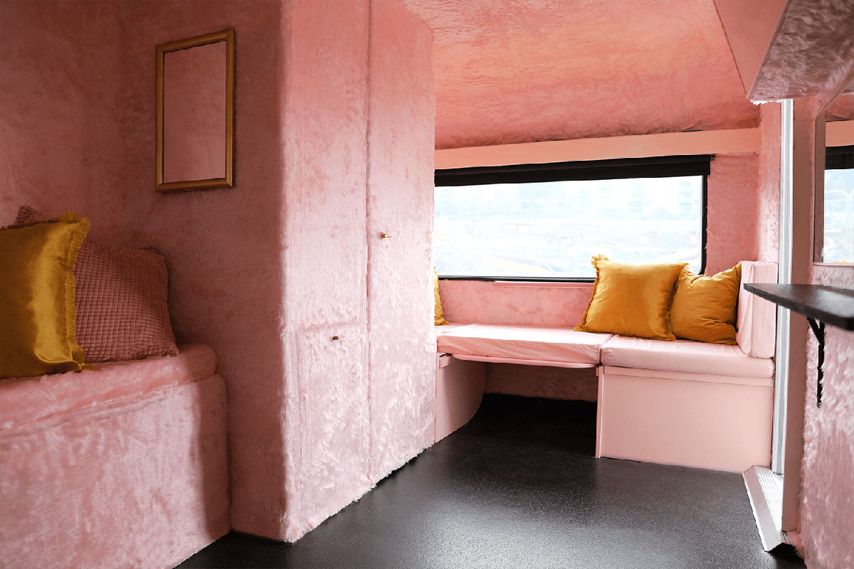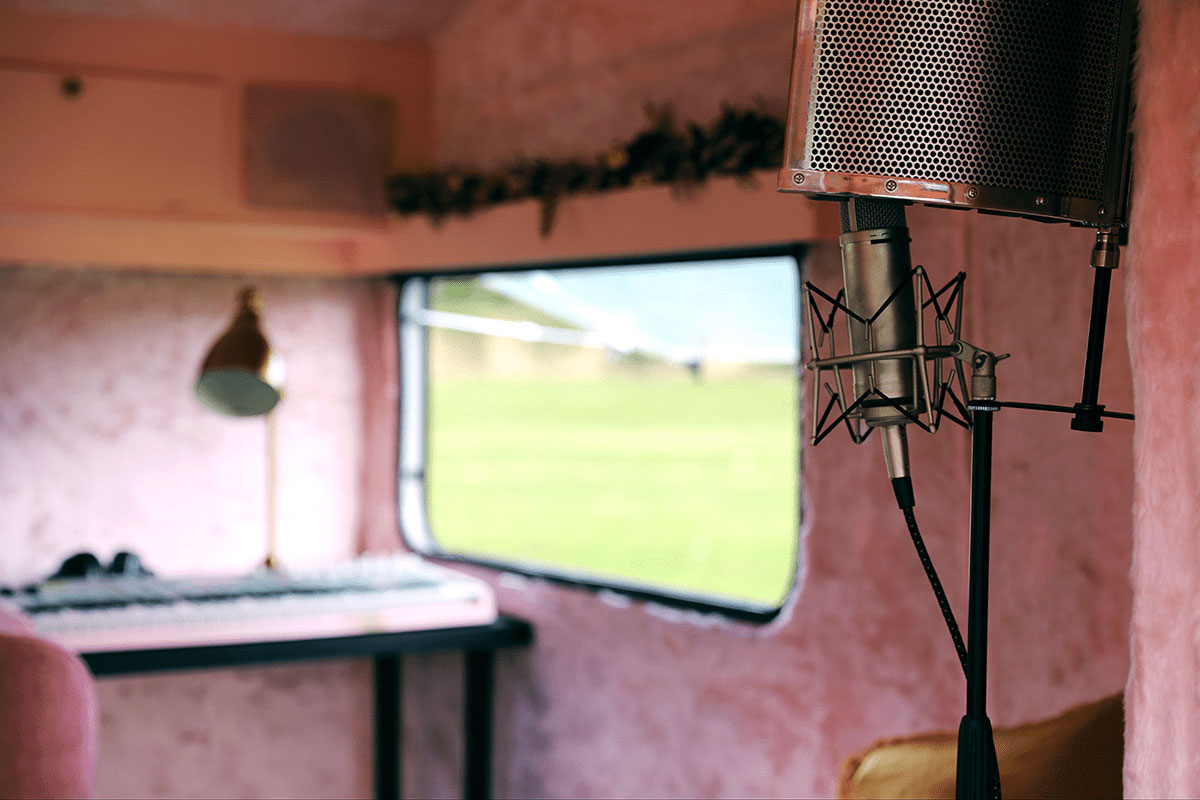 Snask决定提供帮助,并购买了一辆旧的旅行车,并开始计划对其进行重新设计,以将其转变为成熟的音乐工作室。在斯特拉恩·冯·雷贝基尔(Stellan Von Reybekiel)的帮助下,他们撕裂了大篷车的整个内部并进行了翻新,拆除了发霉的部件,更换了木质结构,并安装了全新的地板。然后,在里面穿着粉红色的皮毛,以帮助声音在墙壁上弹起,还因为粉红色的皮毛比热的更热。外面被粉刷了,大篷车也变身得更粉更醒目和辨识性高了。