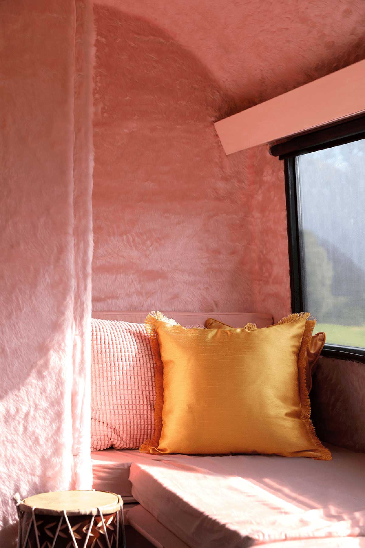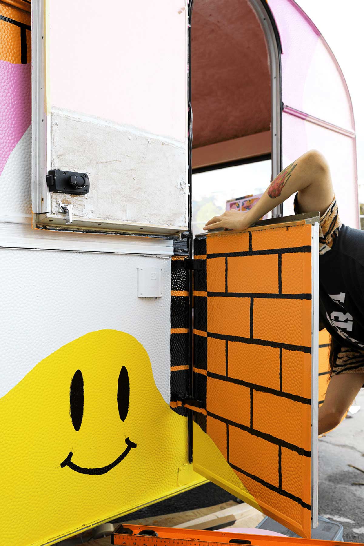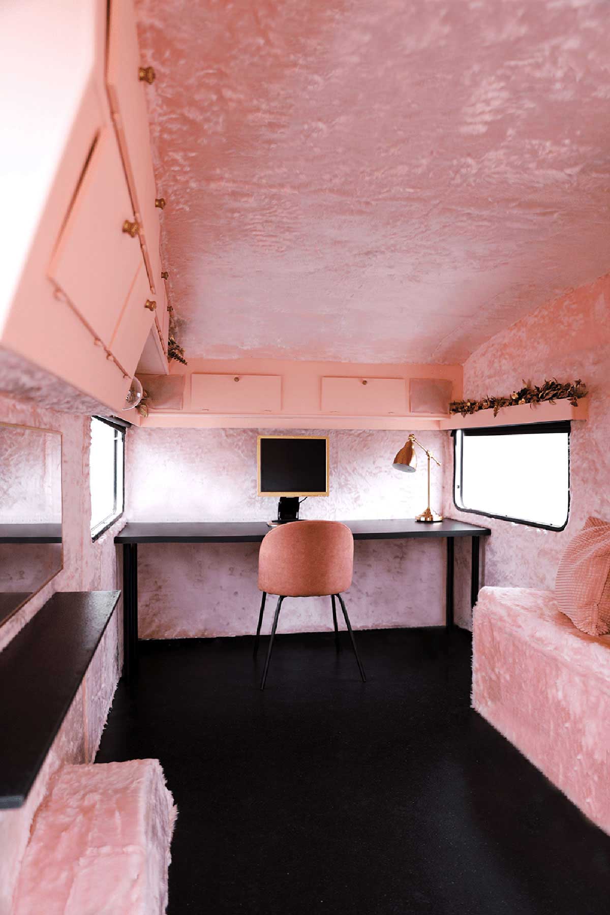 Snask决定提供帮助,并购买了一辆旧的旅行车,并开始计划对其进行重新设计,以将其转变为成熟的音乐工作室。在斯特拉恩·冯·雷贝基尔(Stellan Von Reybekiel)的帮助下,他们撕裂了大篷车的整个内部并进行了翻新,拆除了发霉的部件,更换了木质结构,并安装了全新的地板。然后,在里面穿着粉红色的皮毛,以帮助声音在墙壁上弹起,还因为粉红色的皮毛比热的更热。外面被粉刷了,大篷车也变身得更粉更醒目和辨识性高了。