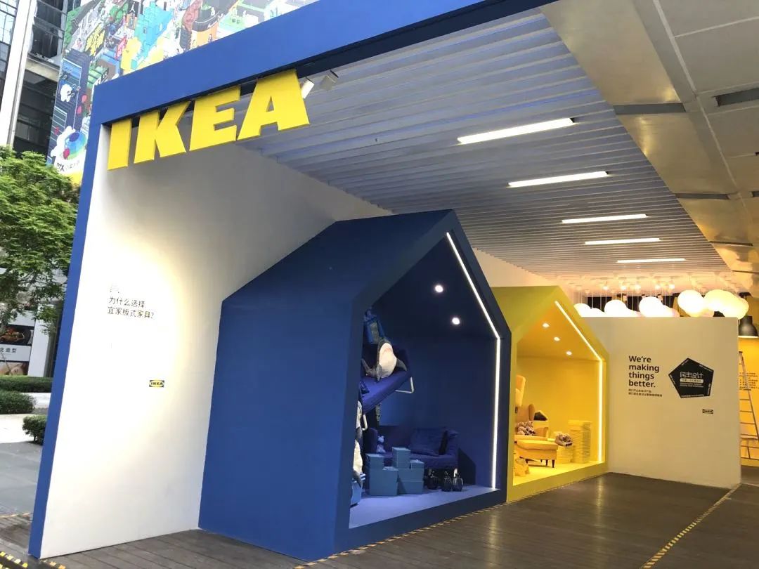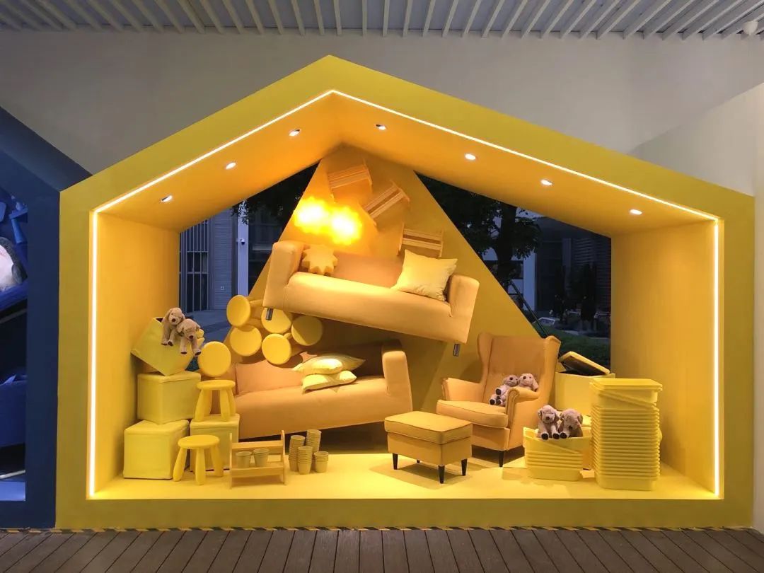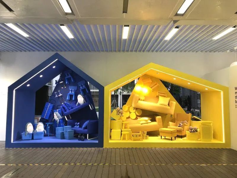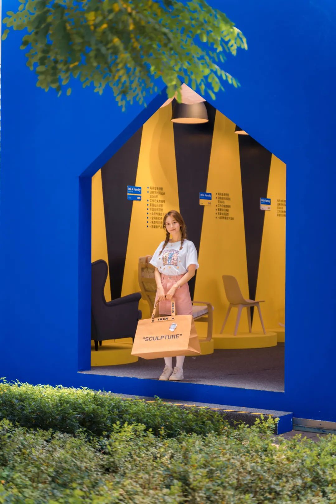 整个宜家快闪店整体外观上简单还原了宜家商场简洁、美观的形象,经典黄蓝配色更是给我们带来一股子的亲切感,是我们熟悉的“配方”。这次快闪店还是玩起了新花样,除了店外的“巨型购物袋”是必打卡拍照点之一,在店内的互动区域还有宜家“长大后”的特色人偶在等着和你一起玩呢!