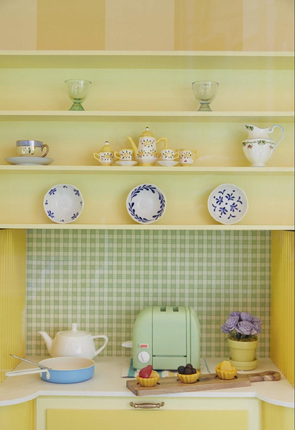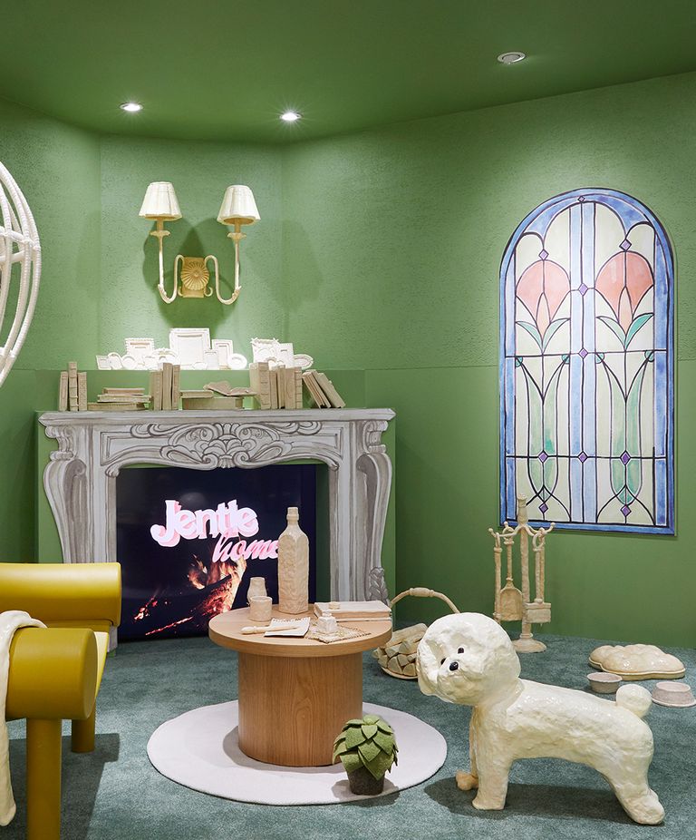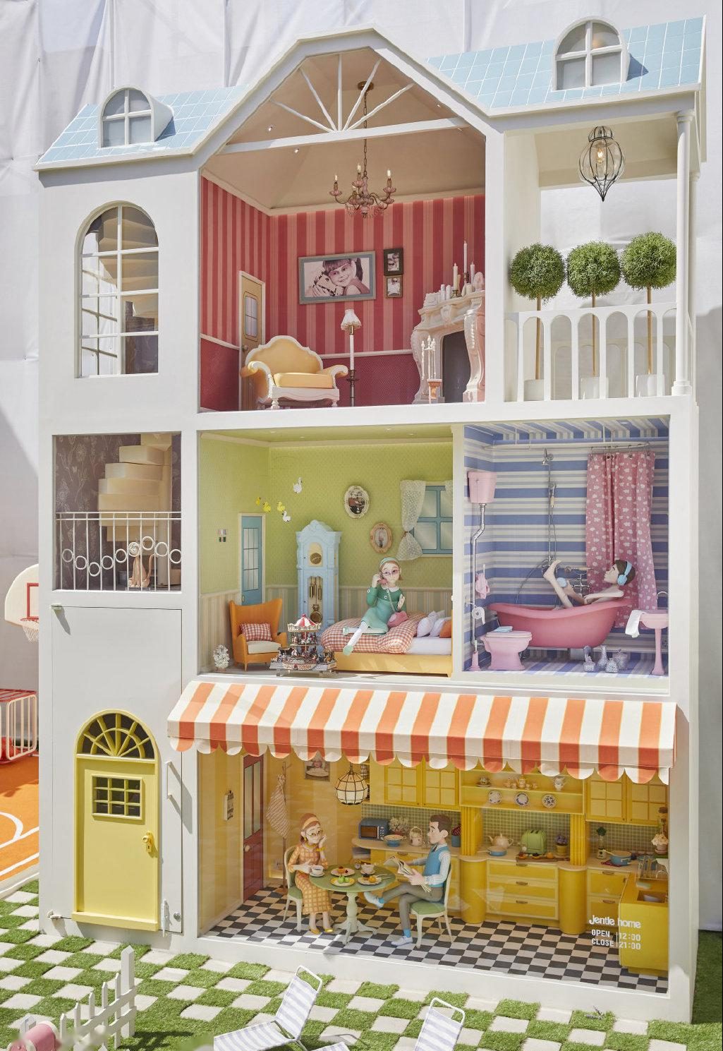 JENTLE HOME开放的外墙使人可以一眼望见内部设计,其中缩小为真实比例二分之一的空间及物品生动再现了玩偶家族的生活日常,Jennie的幻想世界由此开启。