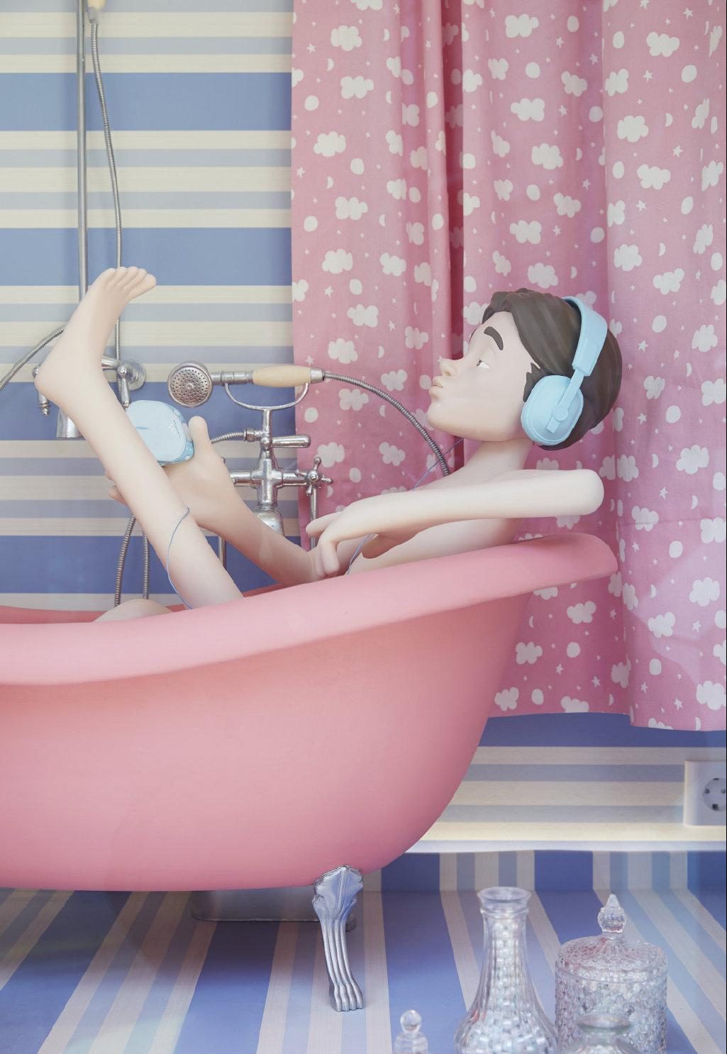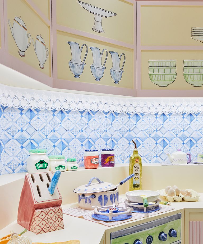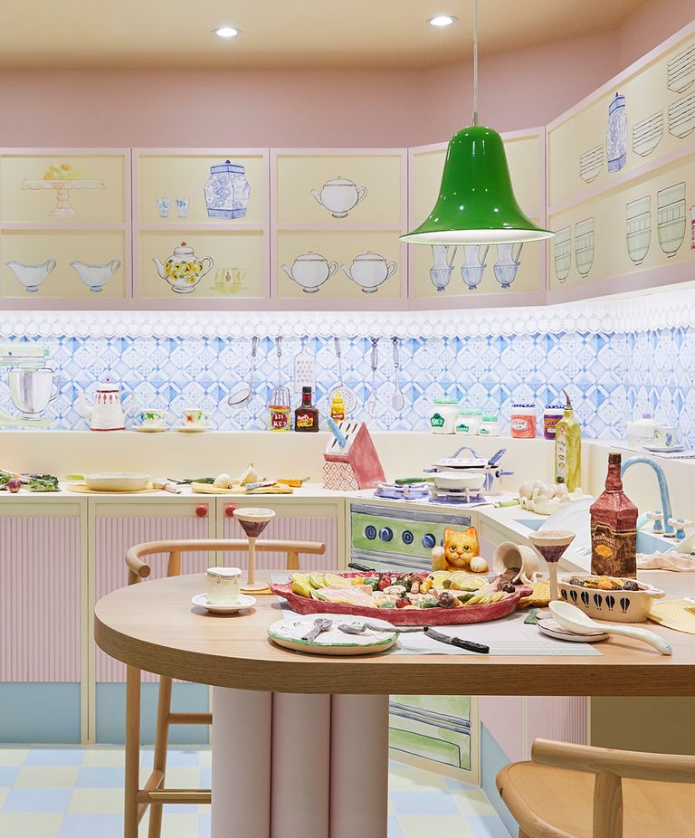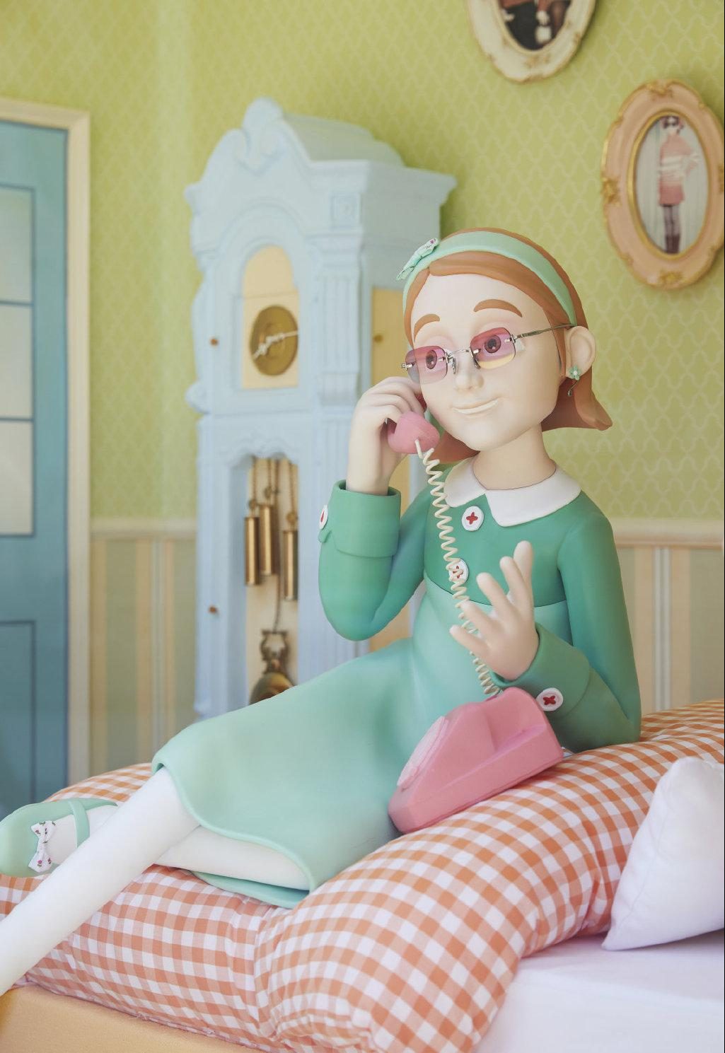 JENTLE HOME开放的外墙使人可以一眼望见内部设计,其中缩小为真实比例二分之一的空间及物品生动再现了玩偶家族的生活日常,Jennie的幻想世界由此开启。