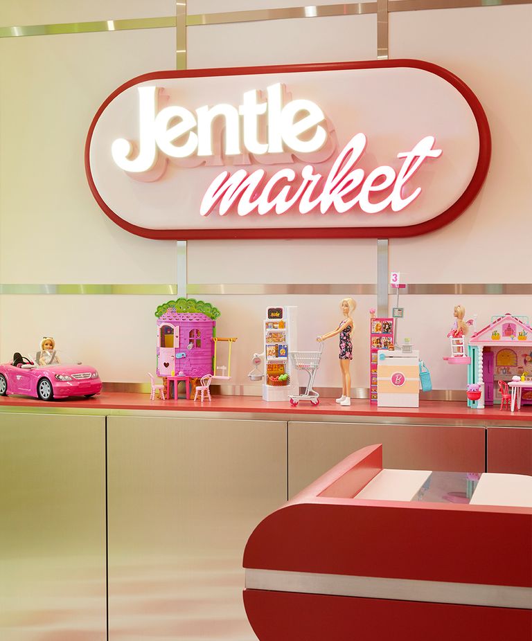穿过2层更衣室的壁橱门,攀上楼梯便会与一家复古风格的超市相遇,在超市中展示着灵感源于玩偶之家的微型糖果。糖果被制作成复古的折叠式手机、童年记忆中的戒指及口红糖等奇趣造型,仅在JENTLE HOME空间每日限量销售。