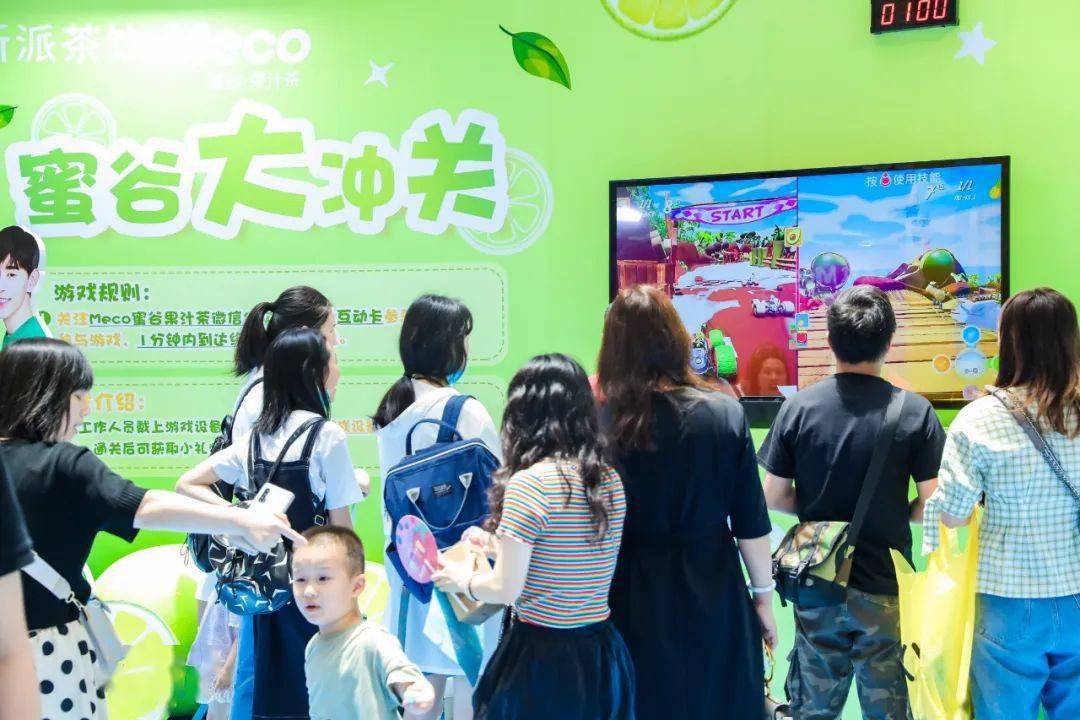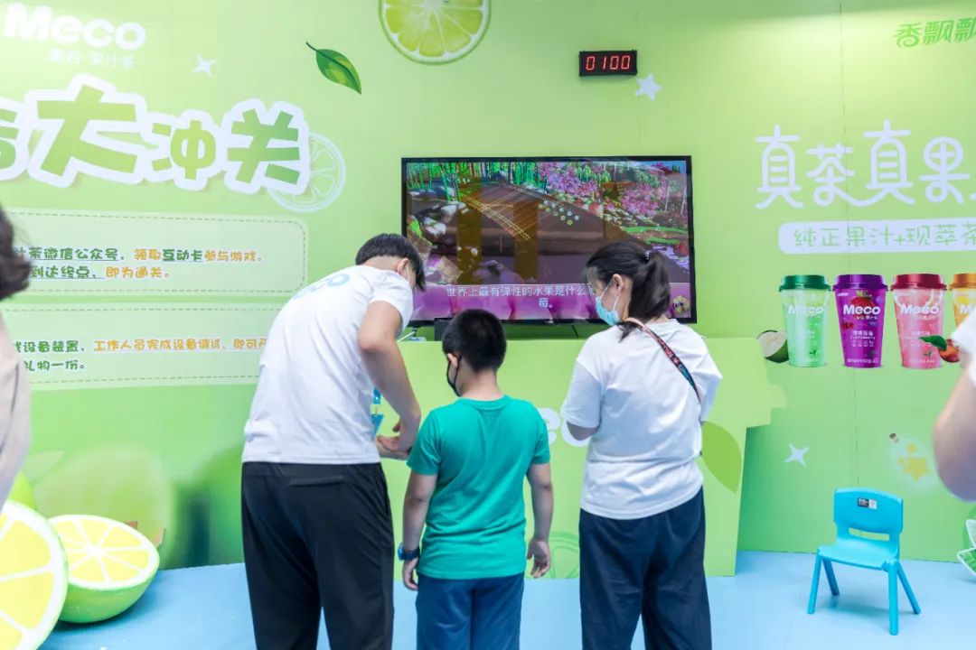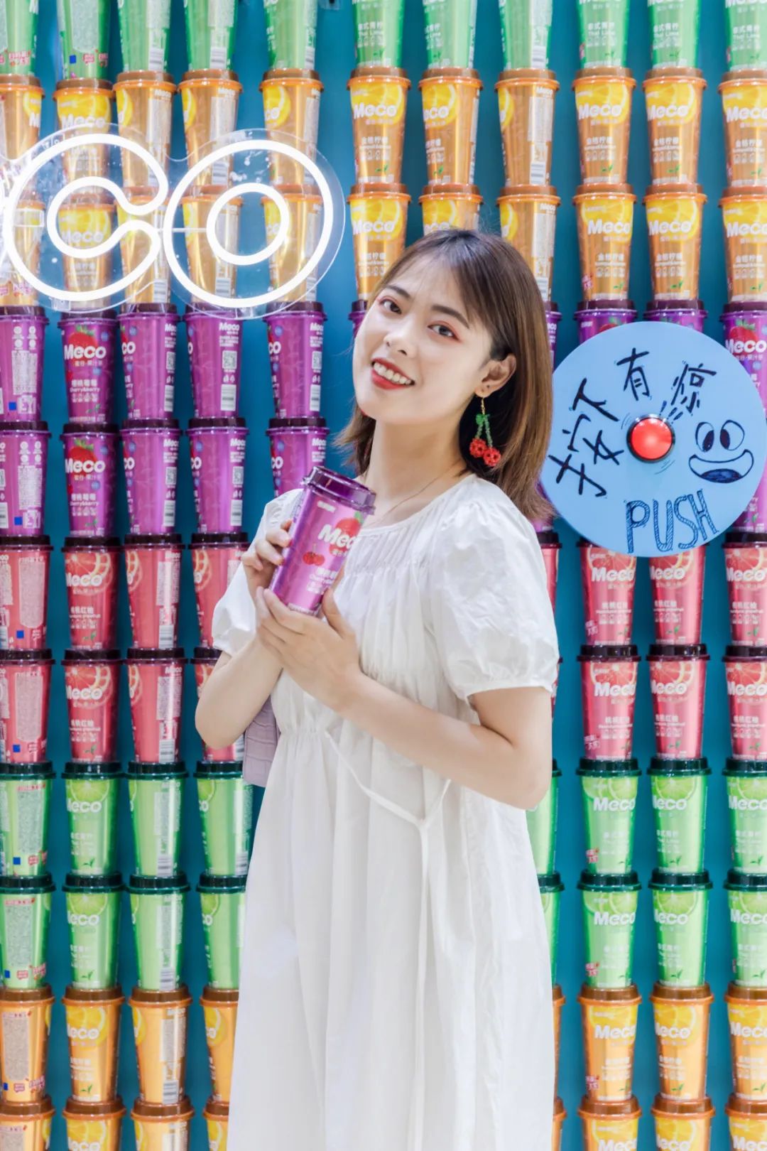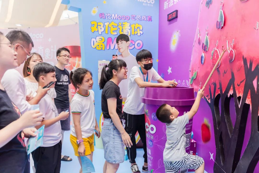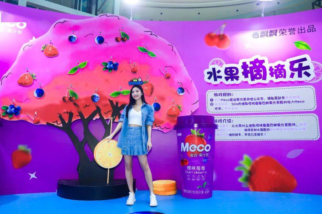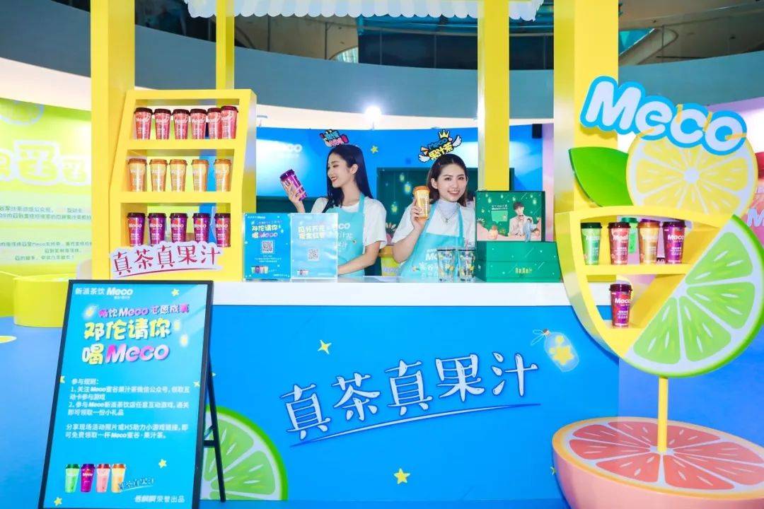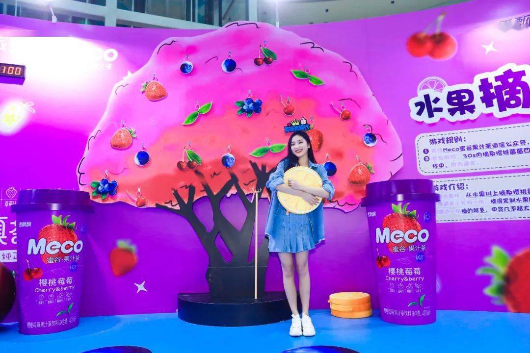 Meco快闪活动现场,许多好玩有趣的亮点让人欲罢不能,整整一万杯果汁茶打造出来的快闪店,光是看外表就气势恢宏,绝对是一个很值得打卡的地方。快闪店入场处,四色海洋球定制的Meco立体字,每个字母都代表了果汁茶的一种经典口味,也太有创意了吧!快闪店背面还有一座芯愿主题墙,脱单成功、颜值爆表、瘦成一道光,满满的的少女心呀!