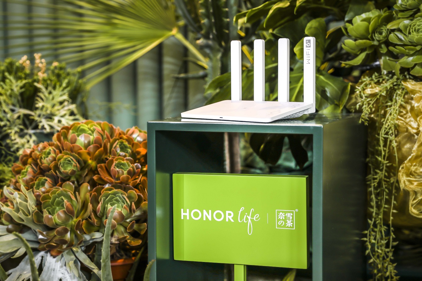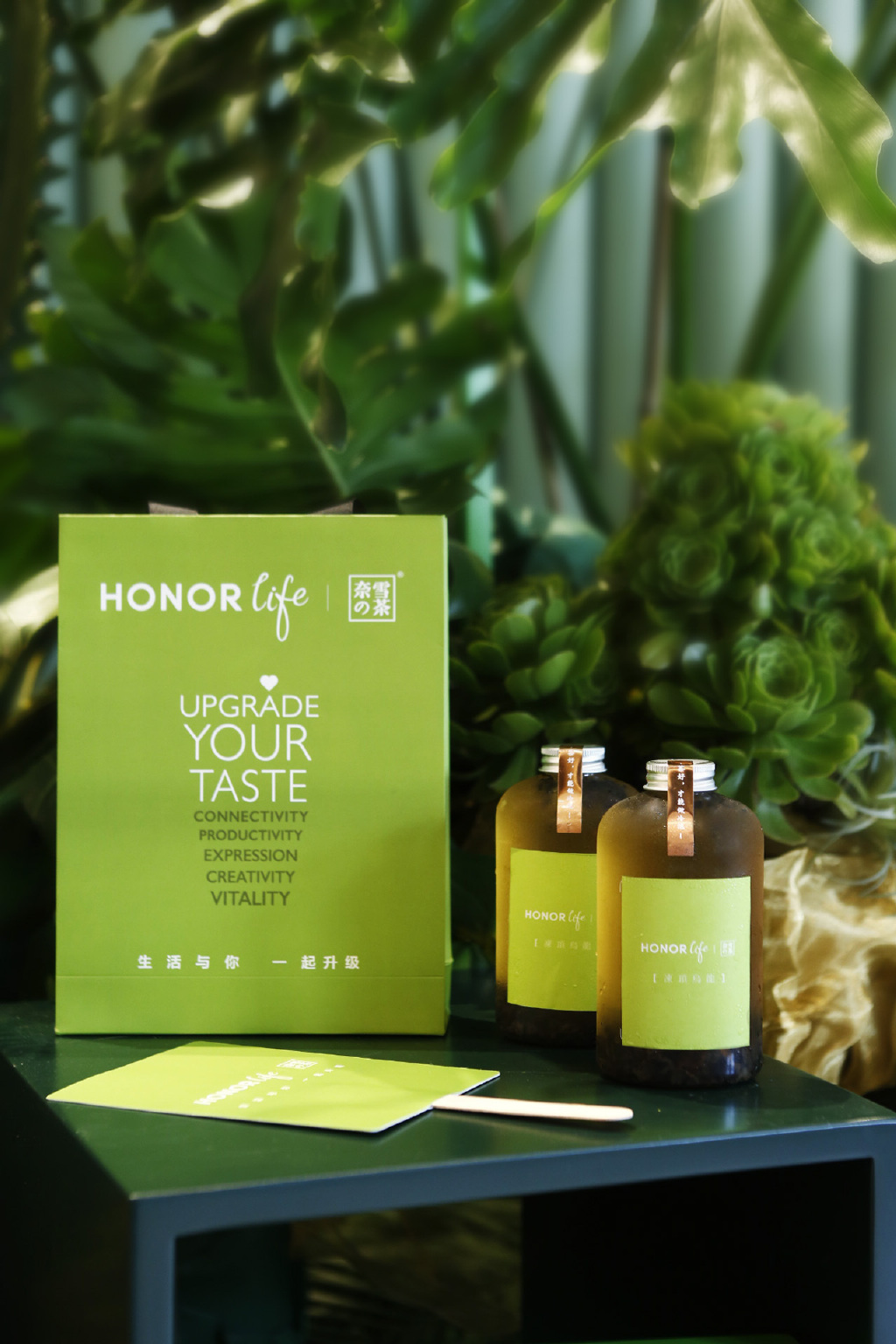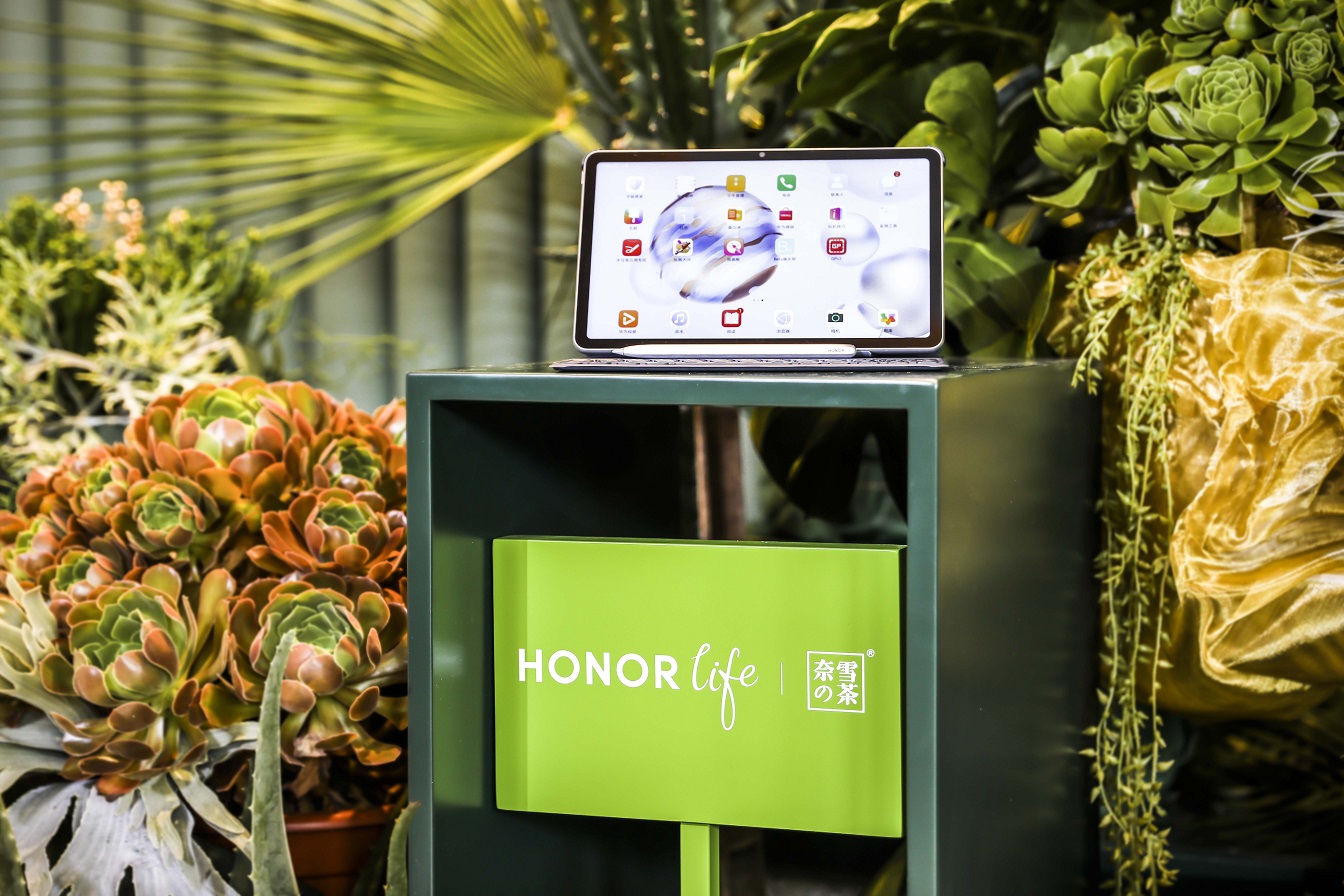 荣耀HONOR life x奈雪の茶联合推出的“科技潮饮快闪店”登陆上海环球港,加料饮品与科技产品的融合,是科技与时尚相结合的潮流,打造了大上海的新热点,吸引一大批爱玩爱炫的小伙伴加入!