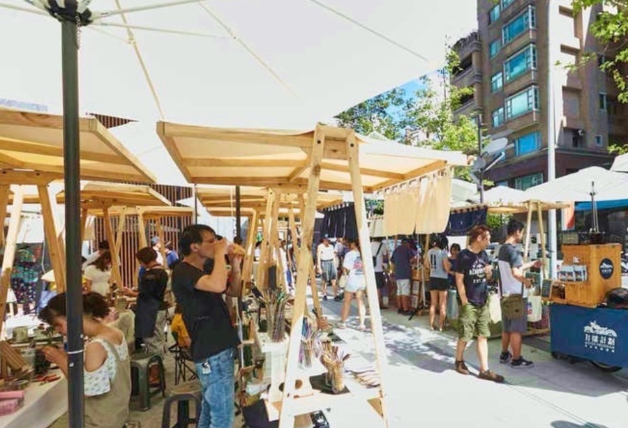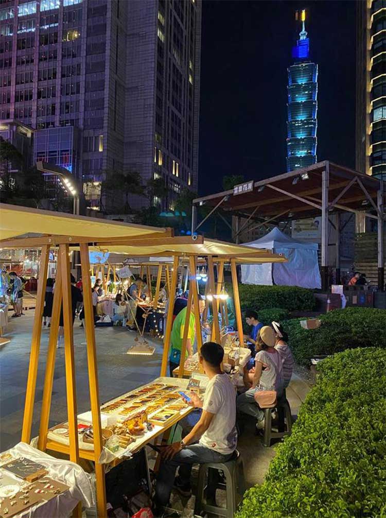 此次受到统一时代百货大力邀请,首次将有艺术感的市集搬到信义区街头,在二楼梦广场上推出全新风格“日落野营の市集”,在高处眺望信义区车水马龙的景色,广场上以近期超夯的网美帐篷为主设计,并以灯串点亮现场的浪漫氛围,摊位部分则是有近70家特色店家进驻,一整排文青木作摊位有好吃的、好玩的、文创的、艺术的通通都有。