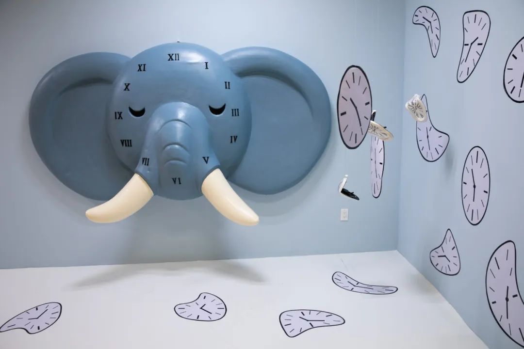 当你走进这间房,与大象脚掌击掌时,可爱的大象会发出“隆隆”的声音来“回应”你。