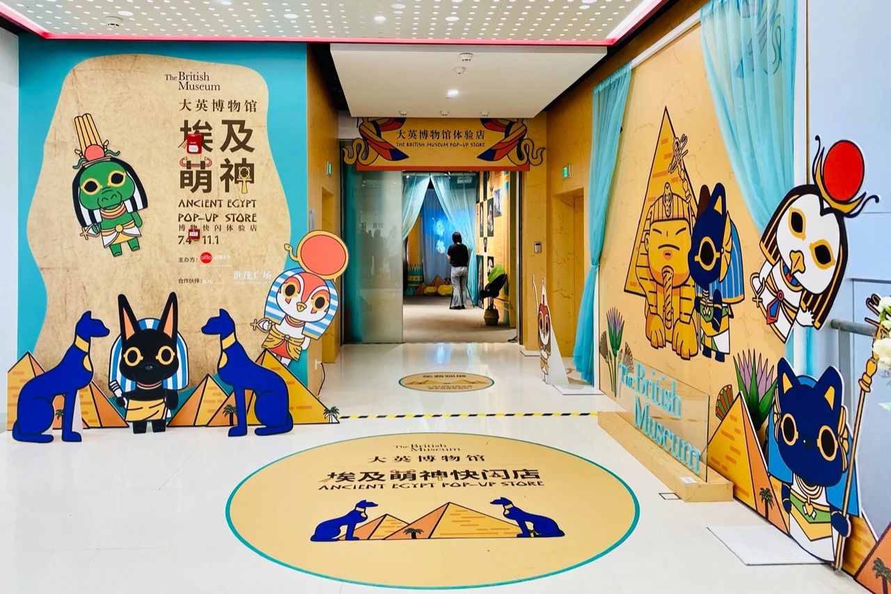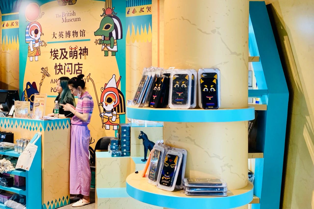此次埃及萌神快闪店,在入口处设置了“立体拍照墙”“埃及博物长廊”“萌神光影互动角”等体验区,带你重回充满神秘色彩的古埃及世界。快闪店的主题零售区,近两百余款埃及系列主题文创商品将呈现在消费者眼前。帆布袋、笔记本、胶纸、钥匙扣、手机壳、水杯、保温杯、衣服、雨伞……从小巧精美的萌神书签、项链,到“埃及萌神盲盒”,品类丰富、款式繁多,可谓是大英博物馆首次在国内集合如此丰富的主题文创周边,通过快闪店的形式集中亮相。