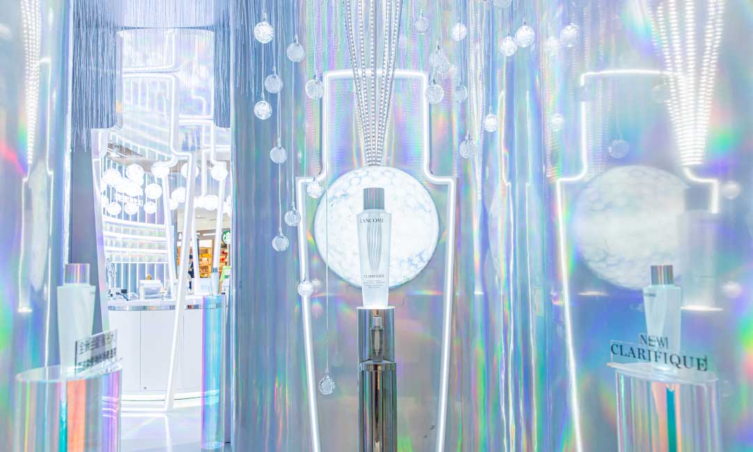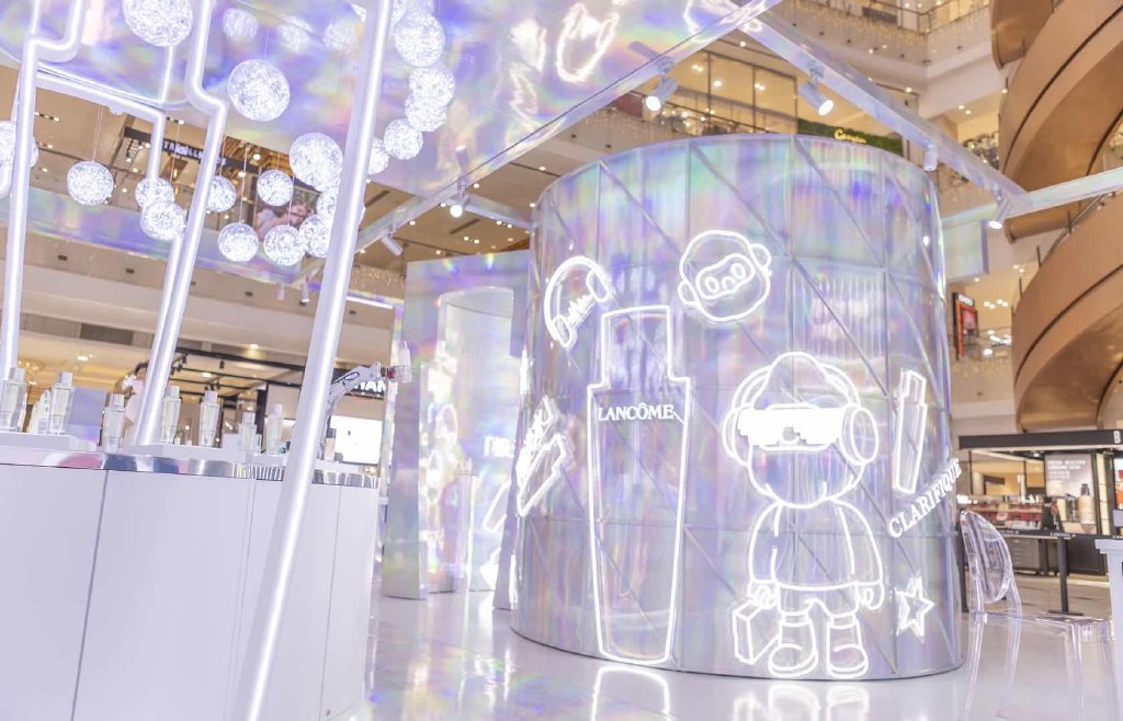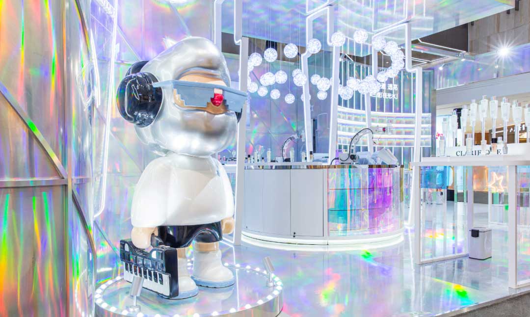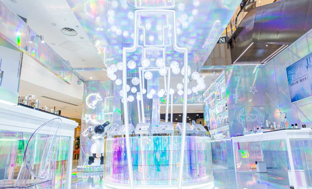 此次联名快闪店活动设计以极光系列为灵感源泉,通过极光和气泡两种元素展开,不仅大胆跨界合作,颠覆常规,更是以不同寻常的视觉布局和互动体验,带领大家迎接人生中每一个炫彩时刻。整个空间场景不仅把极光、绚丽的视觉感受展现得淋漓尽致,还充分融合数字智能,以科技增强互动趣味。