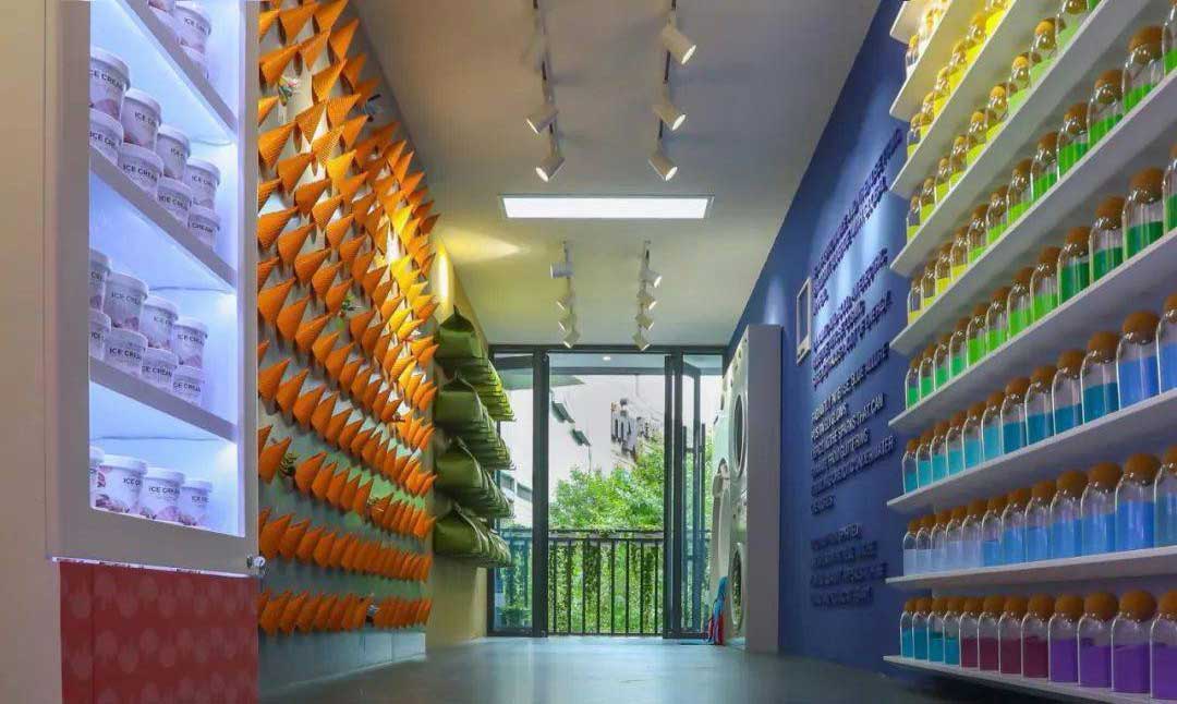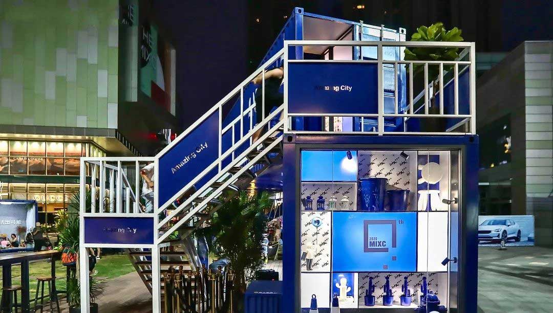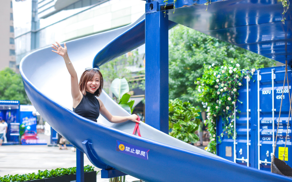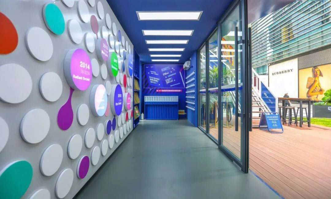 整个展区占地255㎡,高6米的蓝色集装箱装置是展区的主体建筑,他包含有多重感官色彩的网红拍照打卡治愈空间,和为陌生人构筑的、渴望拉近彼此间的距离的COLOR MARKET以及全真草坪铺设的休憩生活空间,整个区域以色彩浪潮呈现了一场城市级的狂欢。