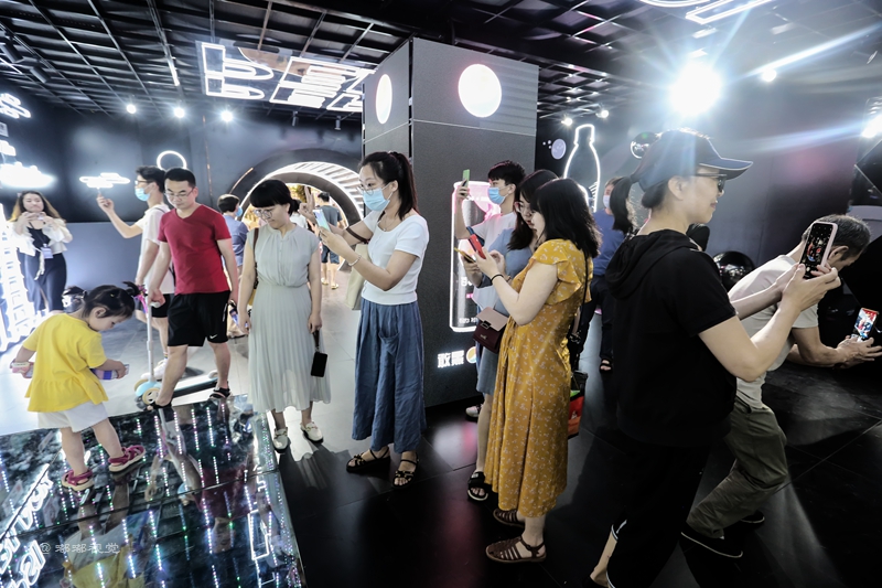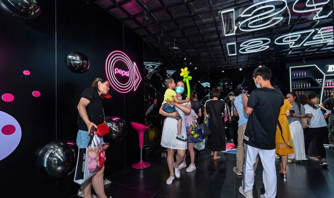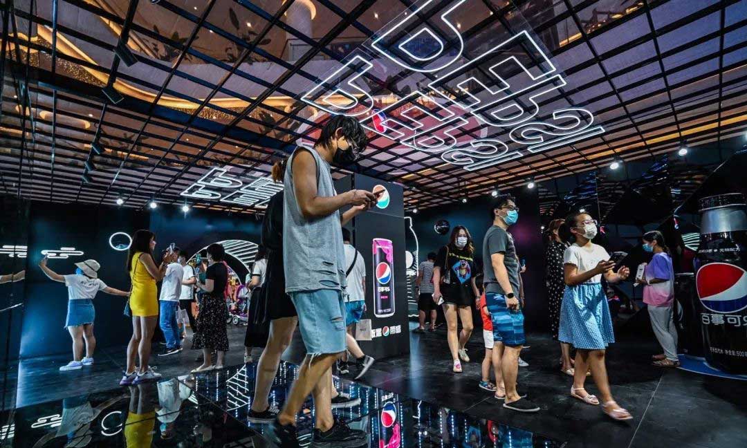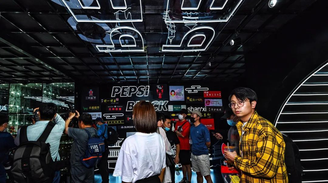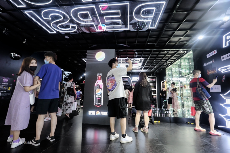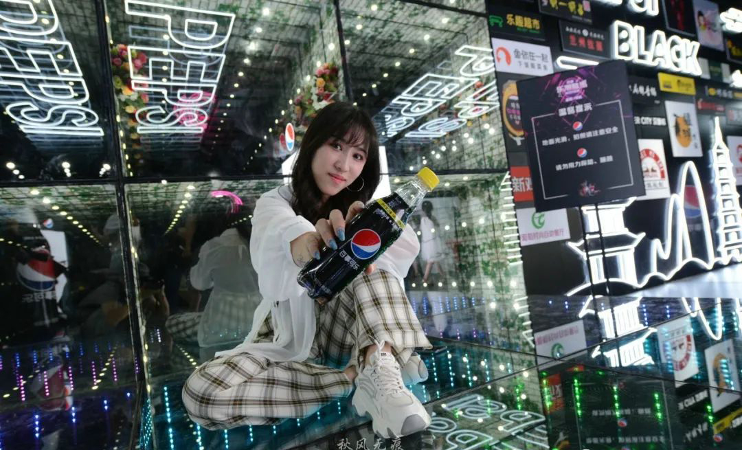 “敢黑带感”,百事潮酷“大黑盒”席卷古城,带来7大主题福利,穿越探索时光隧道,巨大的镭射可乐罐在展厅中央,你可以在魔幻棱镜前拍照打卡,全息影像呈现黑科技大酷炫,AR体验让你裸眼捕捉立体动画,3D地面给你仿佛掉入无敌黑洞,惊险刺激。