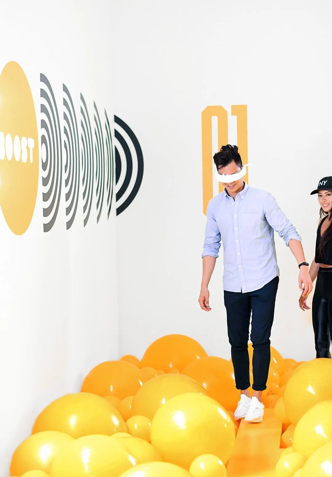 进入游乐场,参观者会在工作人员的帮助下挑选适合自己的 Ultraboost 19 跑鞋。换装完成后,他们将会进入由迷宫组成的 BOOST your brain 区域,通过行走、奔跑感受跑鞋的舒适性。走出迷宫后,他们会坐上跷跷板,通过这种方式感受跑鞋鞋底的减震性能。最后,游客会进入测试跑鞋鞋底弹性和柔软度的奖品区,尽可能地跳高,抓取自己心仪的商品礼券。