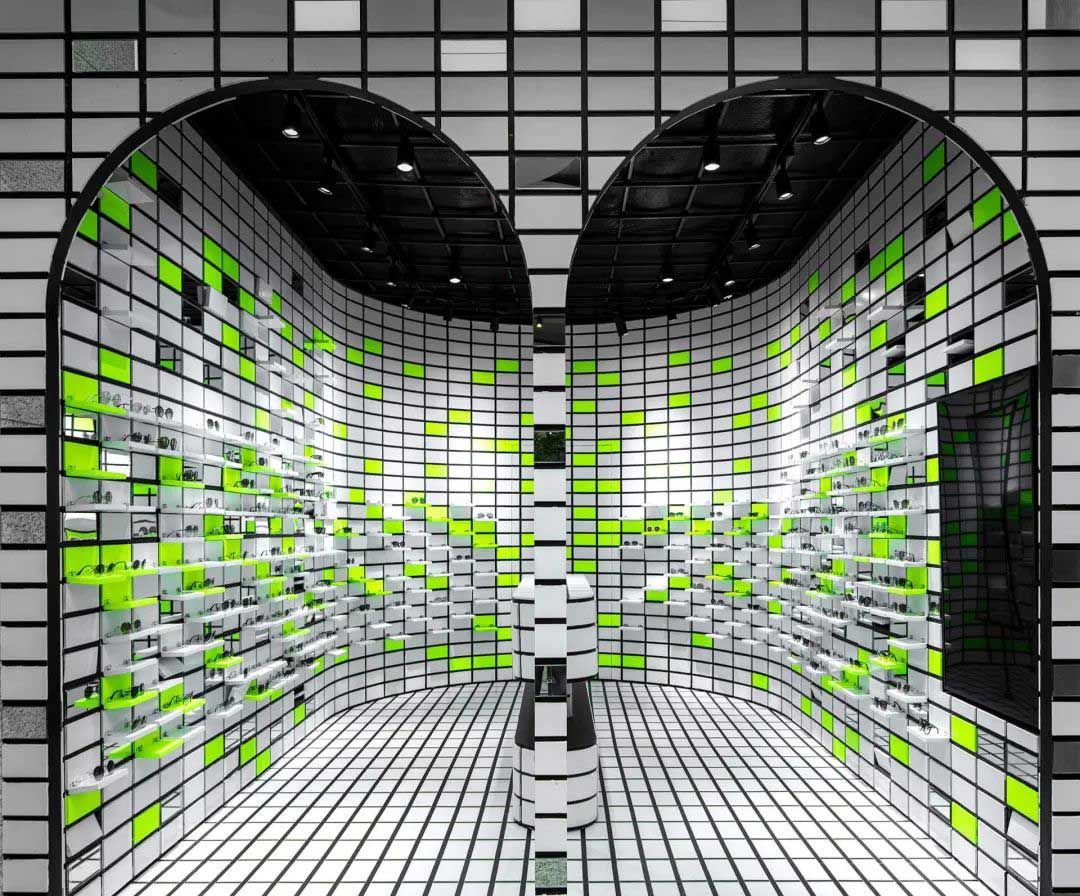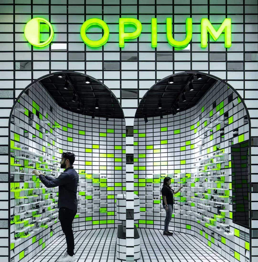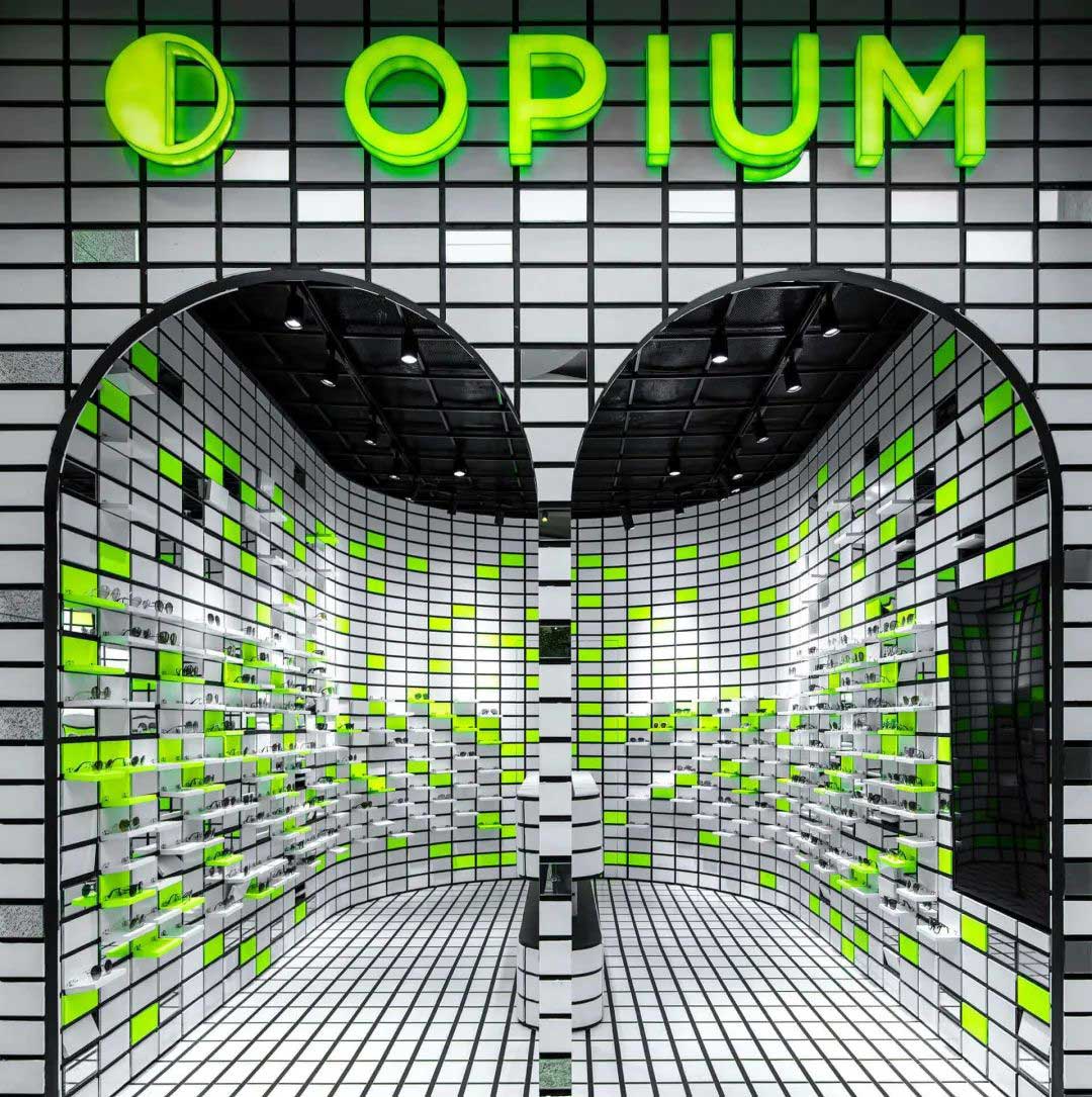 Opium在人流量超大但注意力分散的印度·孟买·Chhatrapati Shivaji国际机场,打造了一间弧形结构空间的快闪店 “The Flip Flop”,旨在通过店内的互动陈列装置及醒目的霓虹招牌吸引顾客的兴趣。快闪店里的黑白荧光绿的搭配,想不吸引眼球都不行,吸睛率太高了。