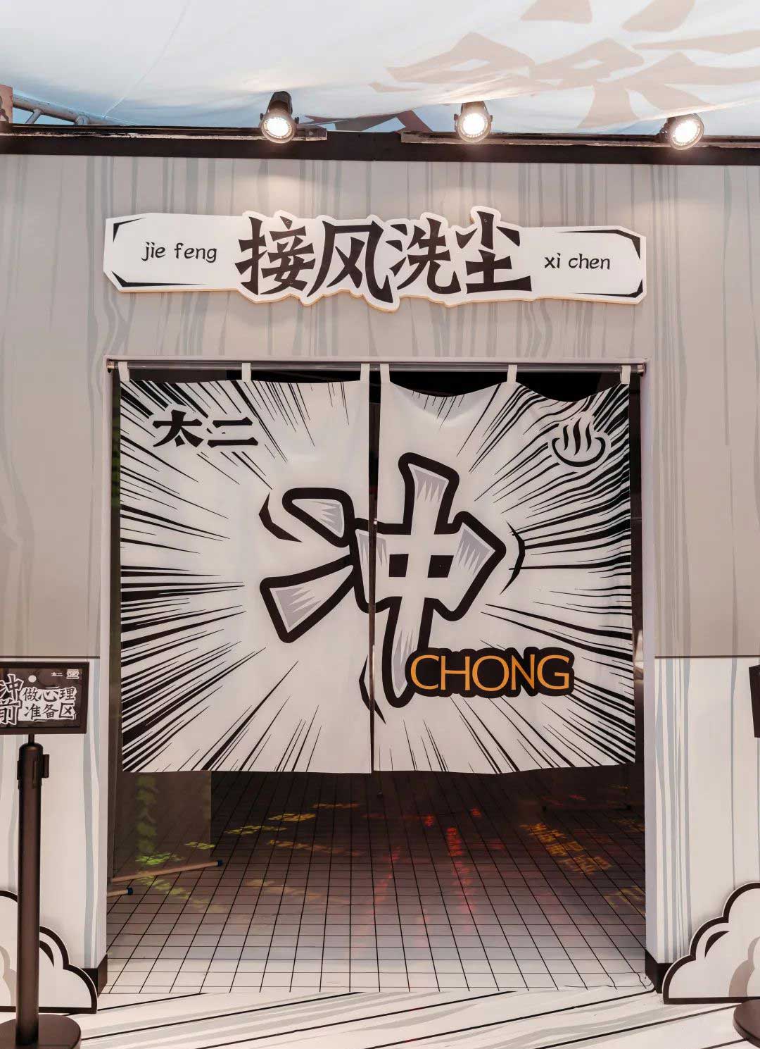 此次快闪店活动将太二酸菜经历的冲洗、风干、腌制、检测的全过程,与人在澡堂中的淋浴、搓澡、泡澡步骤对应联想,让人更真切的感受太二认真执着的态度。而这趟灵魂搓洗之路,你将经历6个区域,从迎宾区领取洗澡三件套,感受搓澡的仪式感到经历冲澡、泡澡、搓澡的打卡环节。