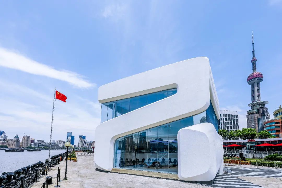 近日,一座造型魔幻,极具科技未来感的独特“R”型建筑,霸气登录黄浦江畔。紧邻东方明珠、金茂大厦与震旦国际大楼,与陆家嘴后现代风格建筑群融为一体。以浦江两岸的壮阔建筑群为背景,这座层高10米的白色建筑,简约中透着绚烂,用这片充满异想的奇妙空间,吸引着无数人的目光。