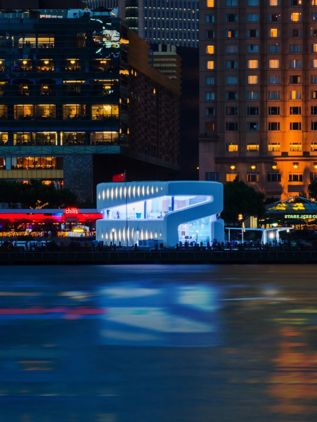 区别于传统建筑,以“R”型设计中天然的虚空作为门和窗户,参观者们能在建筑内欣赏到270°的江景和建筑群,一跃成为外滩新晋赏景网红地标。