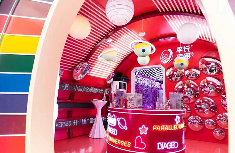 进入汉口二厂站仿佛来到一片热带雨林,缤纷色彩,拍拍拍根本停不下来!每一张都是大片,流动灯光通道带你”穿越“粉色宇宙,少女心就快要溢出来,每一个点都超好拍!现场还可发射表白弹幕,把你想说的话,都喊出来吧!更有专业调酒师在线调酒,平行宇宙小酒馆正在营业中。