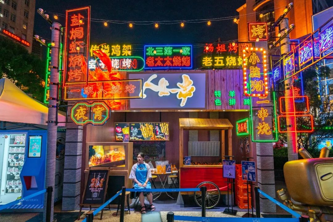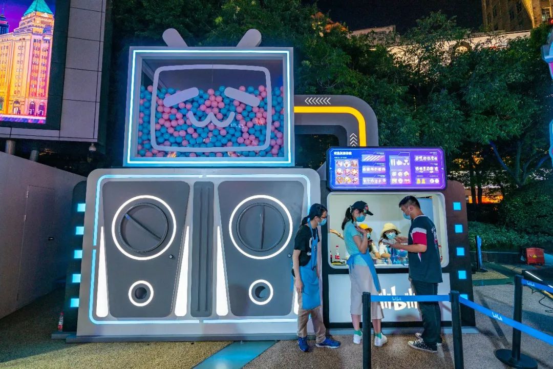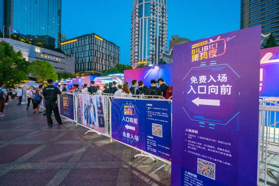 2020年最强夜市空降魔都,南京路步行街与B站破圈联手举办仲夏夜最嗨的集势夜,夜幕刚刚降临,世纪广场就被粉丝包围了,来打卡的小伙伴早已排起长龙,在工作人员的指引下,网上预约领取免费门票,核销后就可以入场啦!