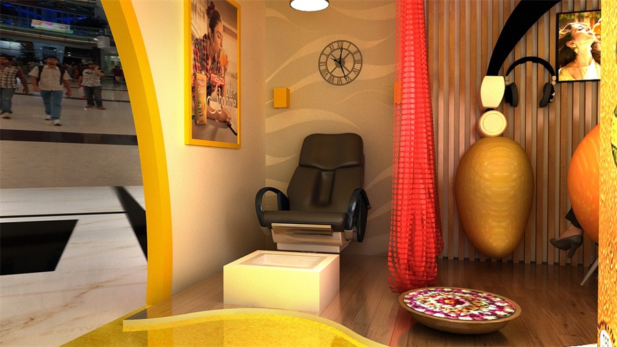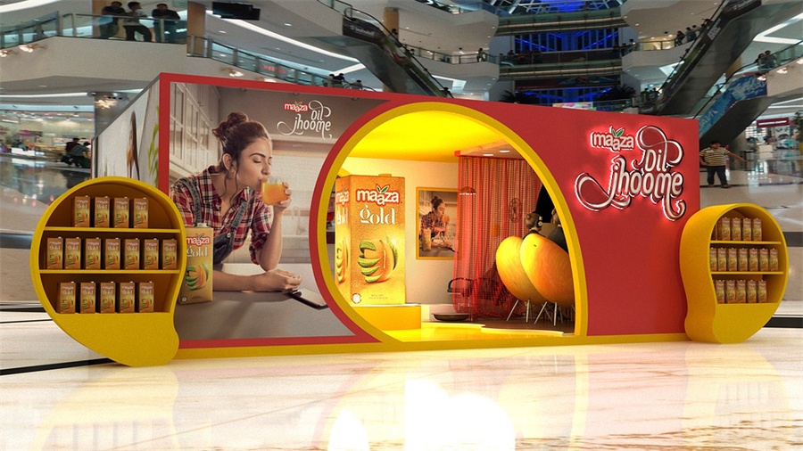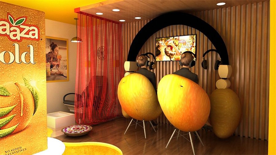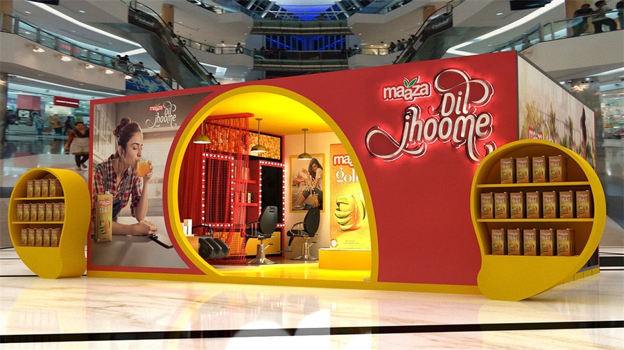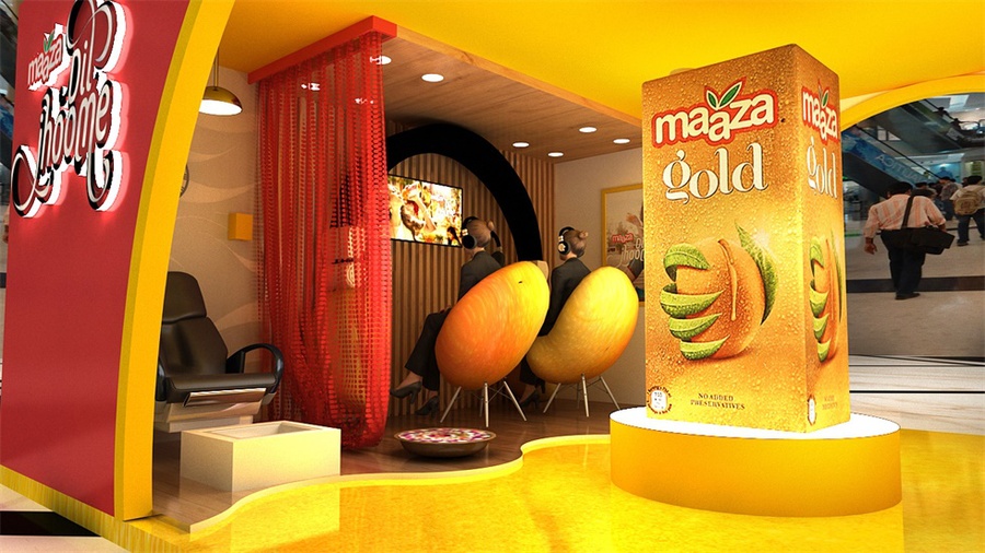 Maaza是可口可乐印度公司开发的芒果饮料品牌。在Maaza的这场快闪店活动中,以芒果黄色为主色调,再加上芒果的造型作为快闪店的出入口,两边再辅以芒果造型的产品展示柜,直呼产品主题,其吸睛率也更高。除了有趣的产品展示外,在这个快闪店活动里,还有两个吸引眼球的互动体验项目,一时剪发,在这种规模的品牌活动中,剪发的确是一个不错的活动吸引点,再者就是设置了一个擦鞋的互动体验项目,消费者可以在这里体验一回擦鞋服务,想想这等服务也是杠杠的。