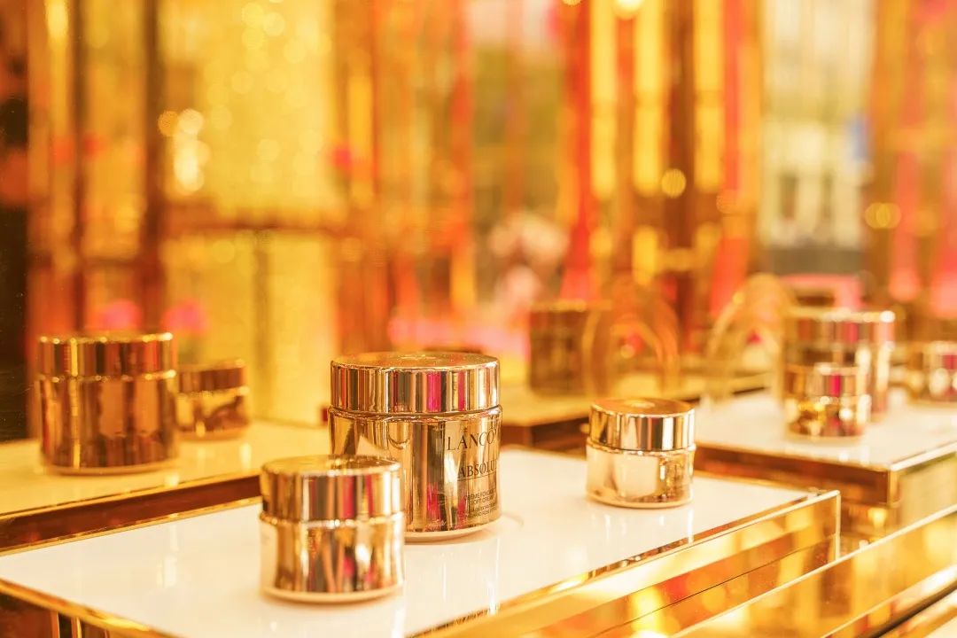 在玻璃花坊四周设有四个弧形试用桌,价值2680的兰蔻菁纯面霜和价值1080的兰蔻菁纯眼霜摆了整整三排,供大家体验试用,还有亲切地护肤顾问在旁指导,非常贴心。