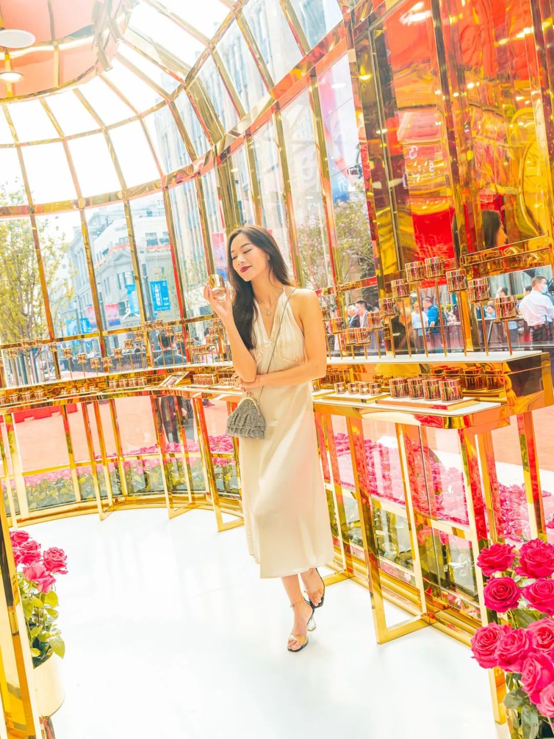 继去年刷屏网络的花海迷宫后,兰蔻大展再次抢眼回归!这一次,它直接把一座法式花坊搬到了魔都市中心!数万朵高级进口玫瑰,打造出一座绝美法式花坊,心动程度已经爆表。整座花坊奢华唯美,晶莹剔透,在高级玫瑰的装点下全新演绎法式风情。拱形的超长连廊,四周是巨大的落地玻璃窗,自带高光的金色立柱串联起一整座玻璃花坊,在阳光的照耀下闪闪发光,美到让人挪不开眼。花坊四周点缀着一簇簇的玫瑰花丛,恍惚间仿佛置身法式玫瑰庄园,不出国门纵享法式风光。