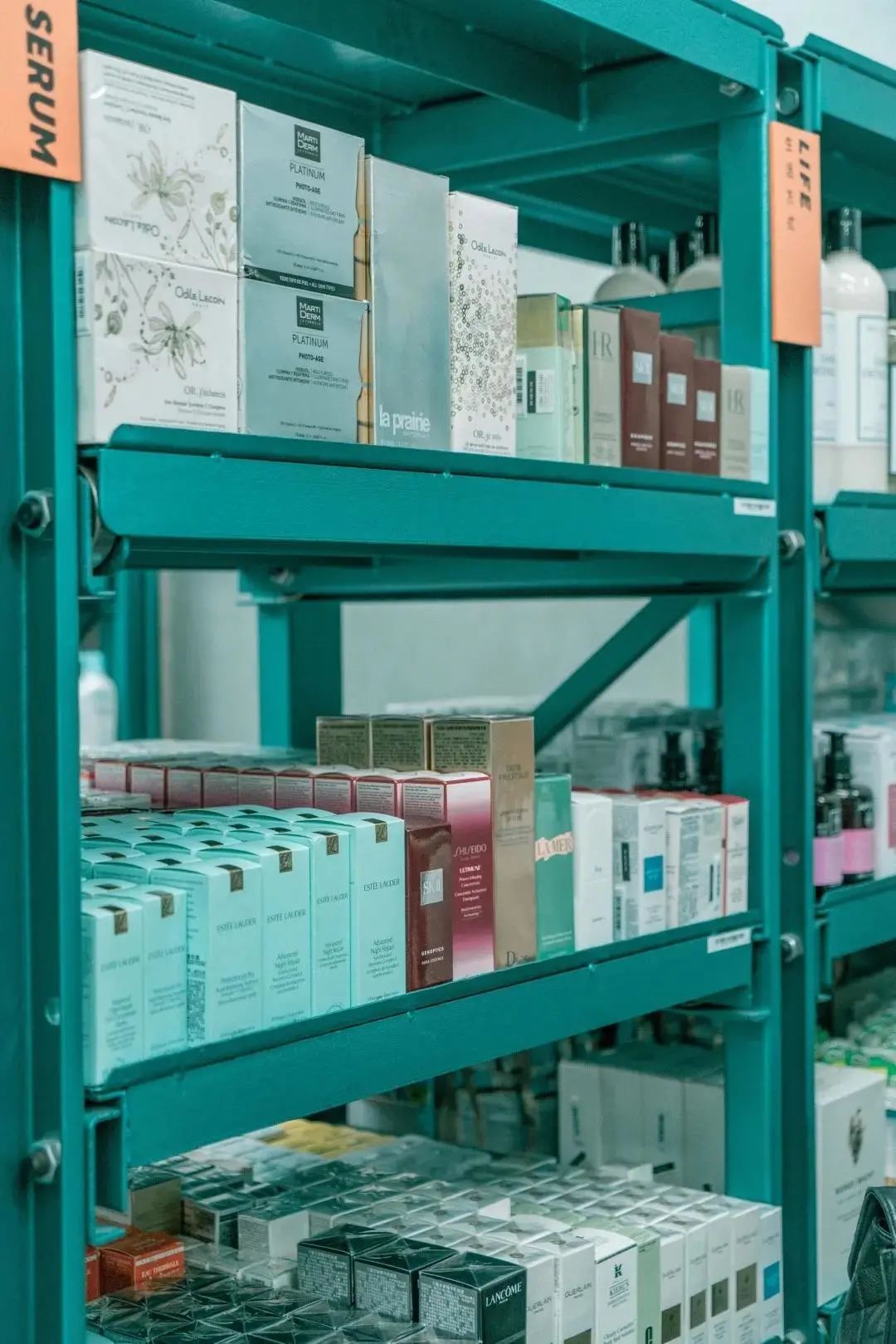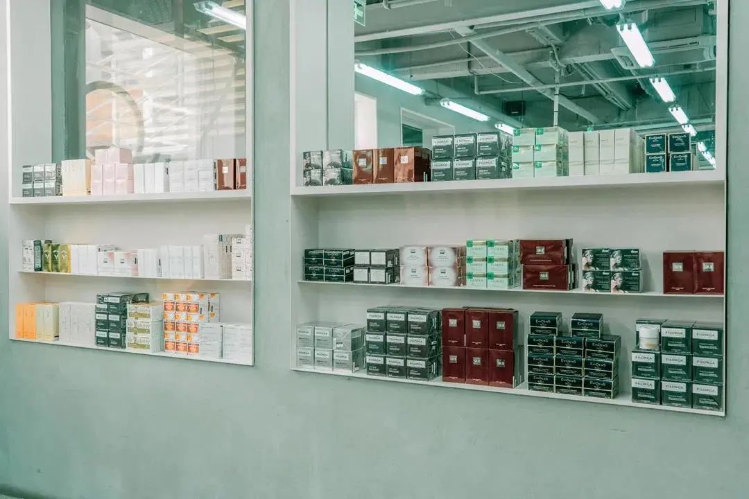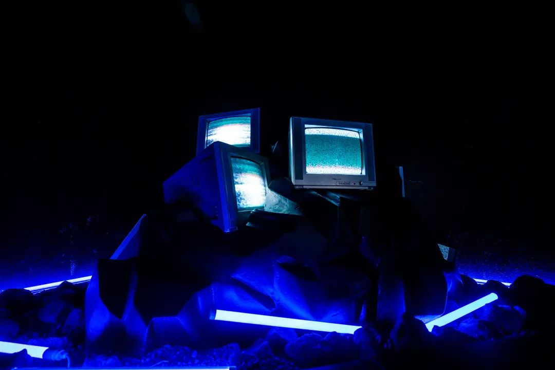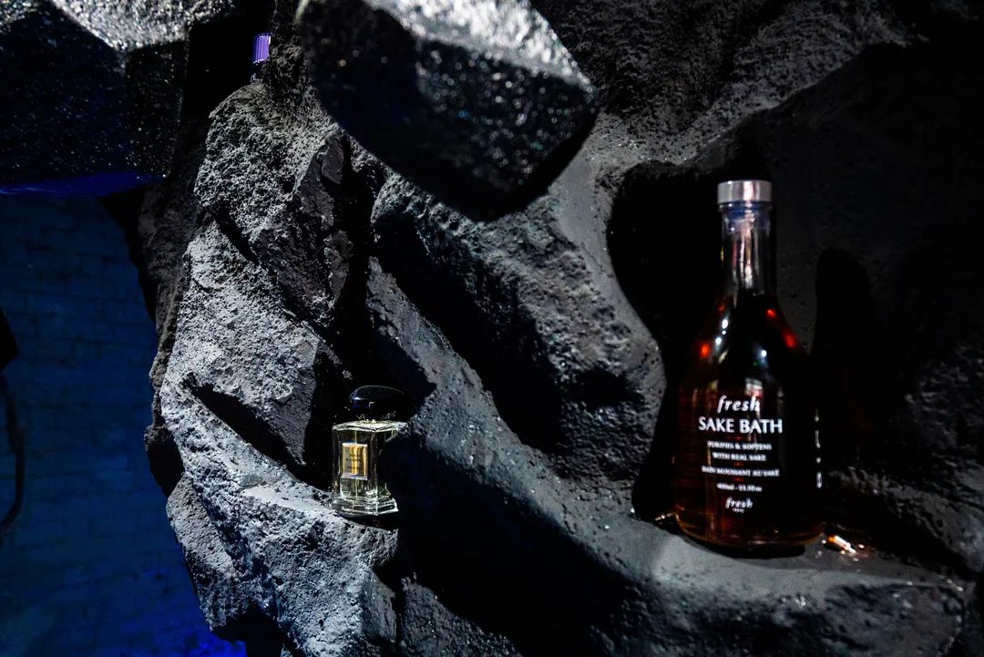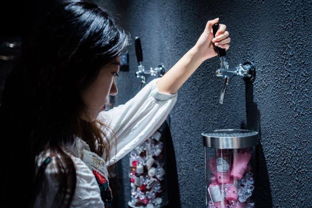 还没进店就被一股神秘力量吸引,进去之后感觉来到了另一个空间,碳石水晶闪烁着宇宙的神秘光芒,丢失信号的电视机滋滋作响,“赛博朋克”风被诠释的淋漓尽致。巨大的陨石群漂浮在空中,无数大小的陨石迸射出虚幻的光芒,暗黑工业风似乎充满着神秘力量,伸手仿佛就能触摸到。装着各式大牌美妆的铁皮桶,散落在陨石山上,这里可是拍出时尚大片的绝佳打卡点,随手一拍就是大片既视感 。