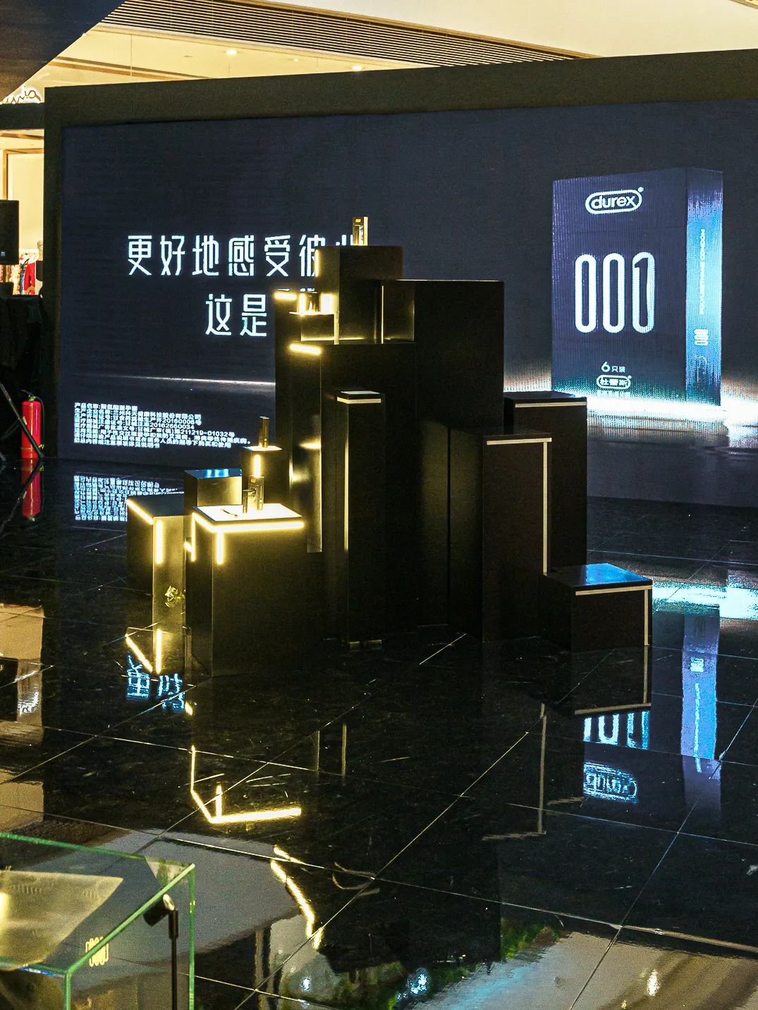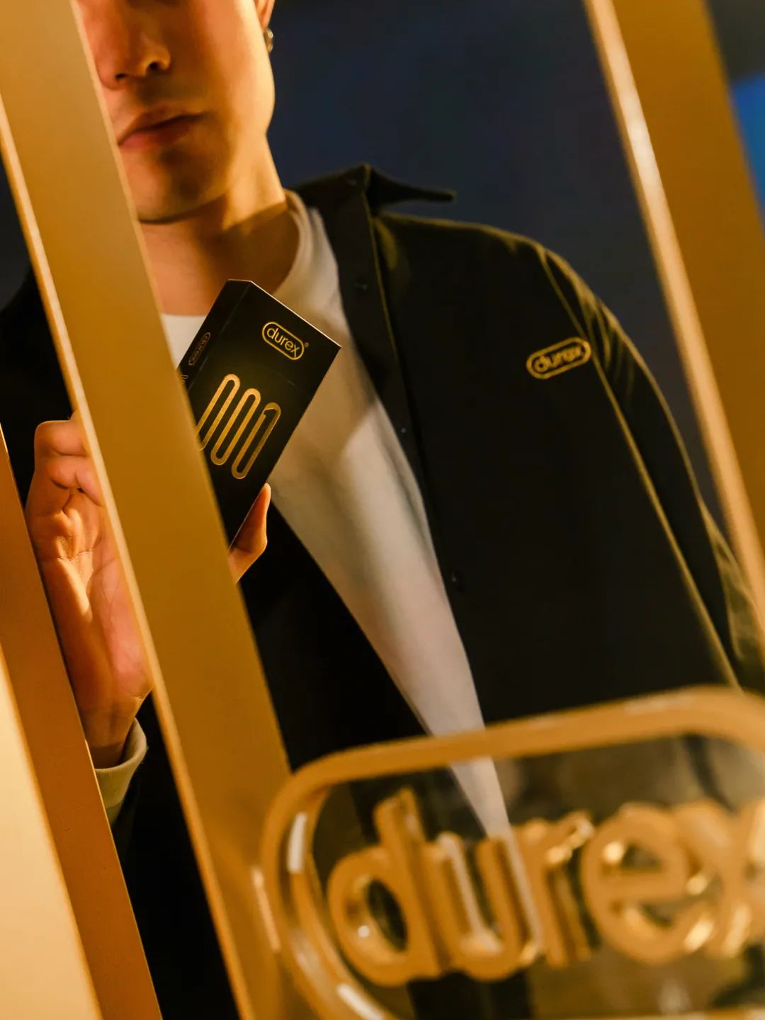 来到概念店现场,真是忍不住要感叹一句:不愧是你杜蕾斯,真得太会了!纯黑色搭配亮眼金色,没有多余的装饰,细节之处透露出满满的高级感。走进其中,三大打卡互动区同样又潮又酷,超级适合拍照!在杜蕾斯跨界限时快闪店现场,我们终于看到了全球首发的杜蕾斯durex 001。