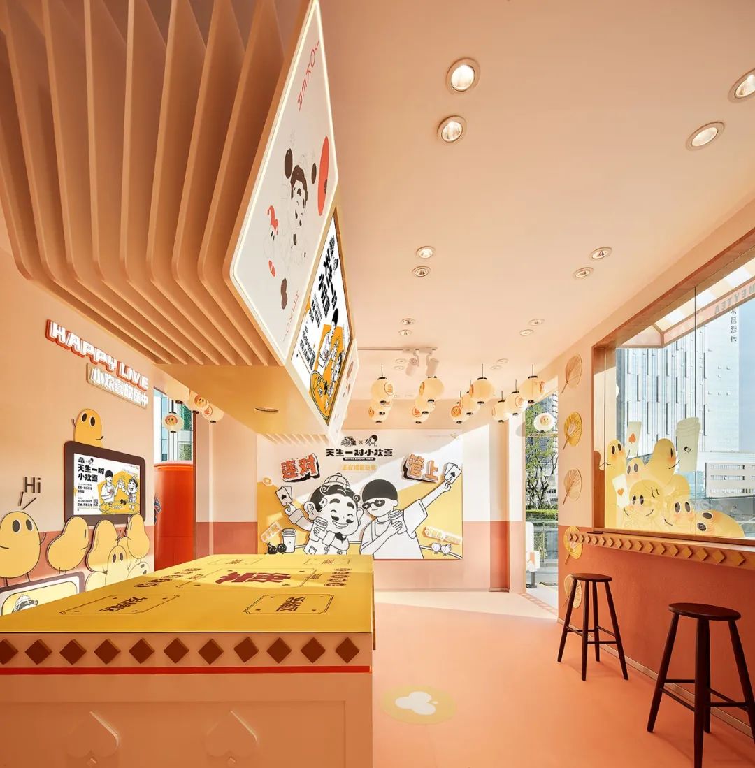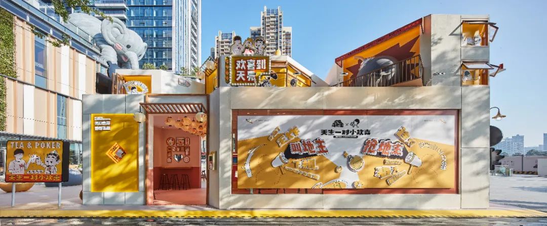 “喜茶·欢乐茶馆快闪店”的诞生,除了为两大品牌实现了双向赋能,更是基于2019年腾讯棋牌打造的品牌IP“欢乐茶馆”,深化了其年轻化的IP标签,刷新了品牌形象。在用户基础广泛、年龄层次多元的前提下,旨在通过多样、有趣、新颖、年轻的方式,实现产品与品牌文化的年轻化持续运营。同时,本次联合快闪店也再度完成了从“文创体验空间”到“可持续运营线下场景”的焕新升级,成为了真正意义上的一家“欢乐茶馆”,并深度诠释了IP中“打牌+喝茶”这一核心体验。