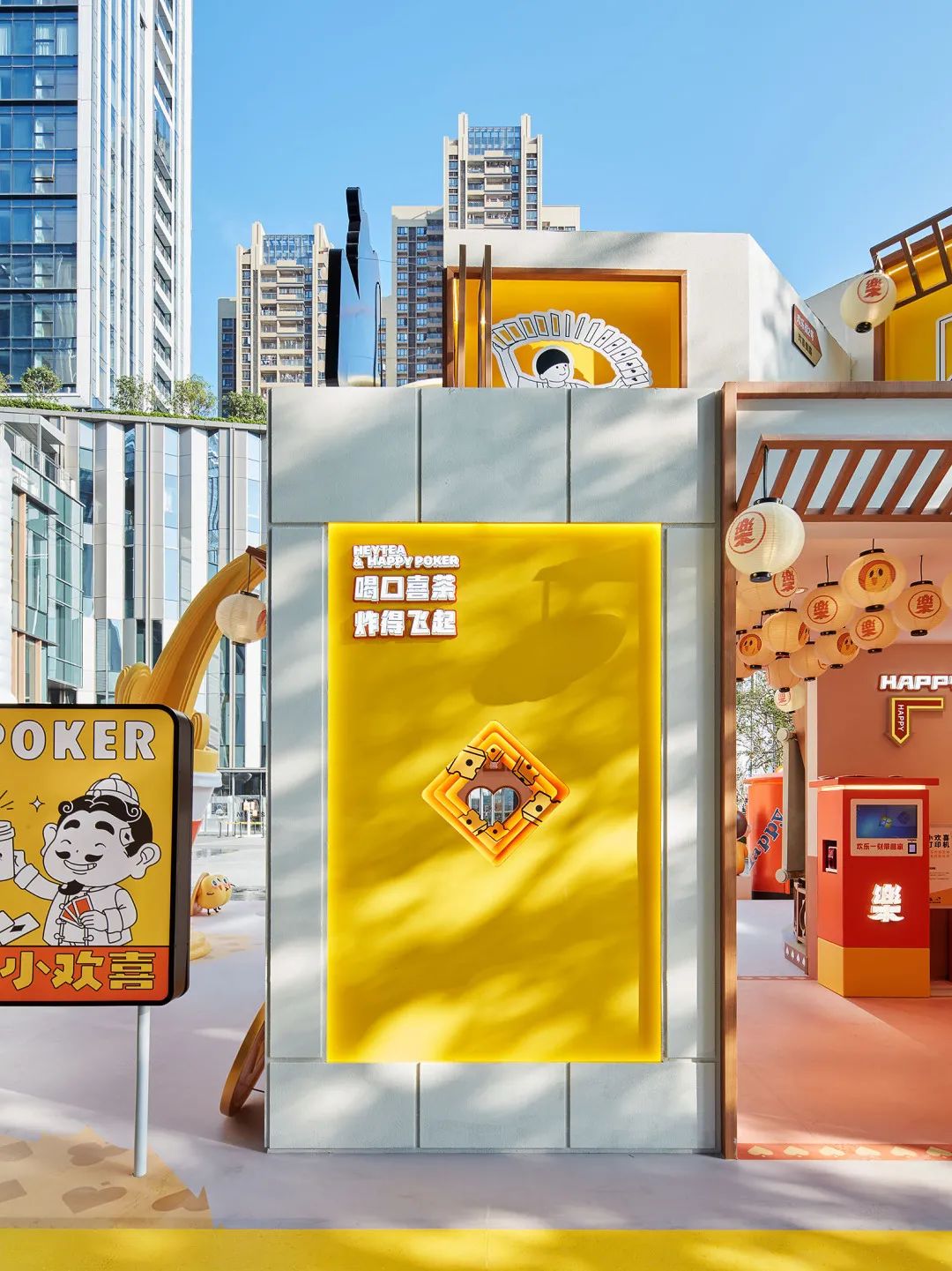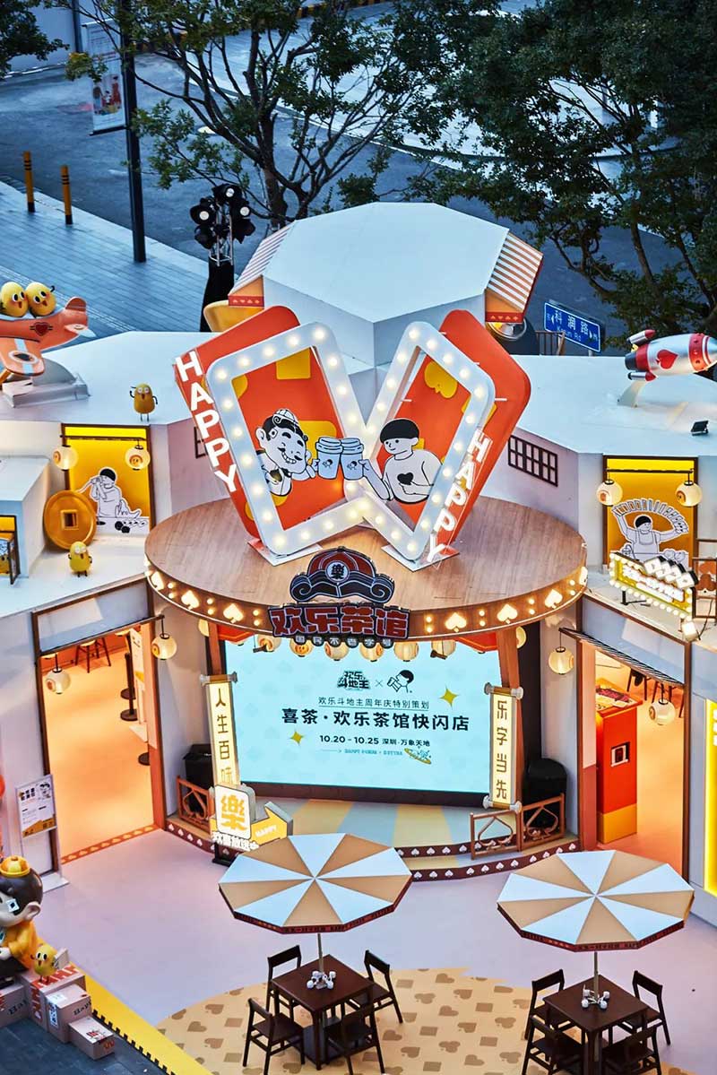 “欢乐斗地主x喜茶快闪店”在深圳万象天地水广场正式开业。开业当天,进入快闪店享受“喝茶打牌”休闲生活的人群就络绎不绝,其中还有不少网友在微博等社交平台分享了自己在快闪店内的精彩体验,引发了线上网友们的热烈讨论。