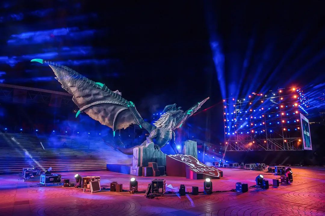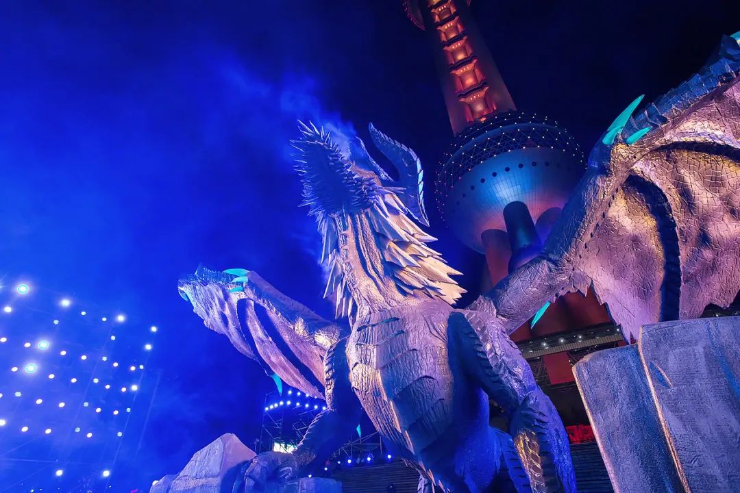 2020英雄联盟全球总决赛上海陆家嘴半决赛线下助威活动,在上海东方明珠塔释放了一头“远古巨龙”。其实本质上只是一场3D投影灯光秀,助威赛事。却因为选在了东方明珠之下,成了一个爆款营销事件。