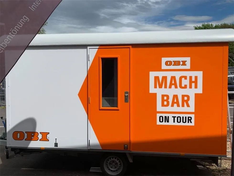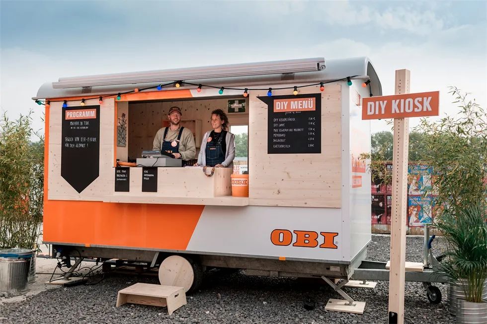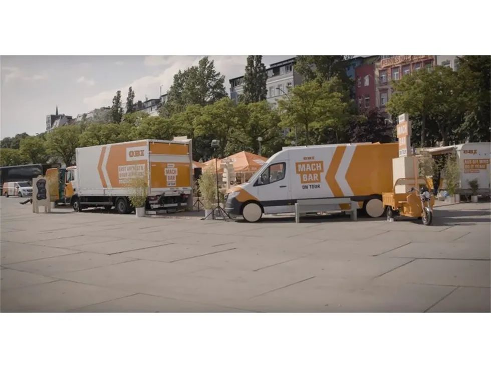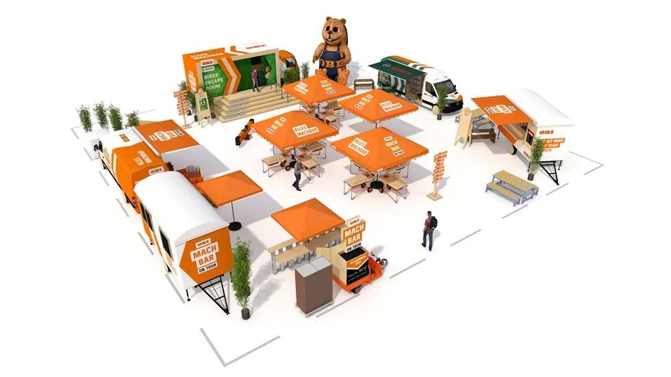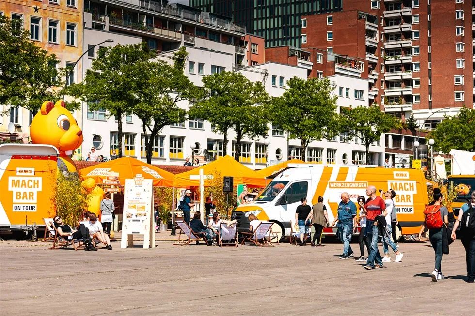 除了社交媒体活动,欧倍德(OBI)在德国和奥地利举行了巡回路演,活动中包含了DIY动手活动,产品展示等内容,活动不仅要告诉现场的客人“什么是可能”,而且要直接告诉他们。在那里,你会把DIY制作和轻松愉快联系起来。在城市中的节日活动现场,营造一个随意,让人心动的氛围,邀请路人逗留和自发加入。