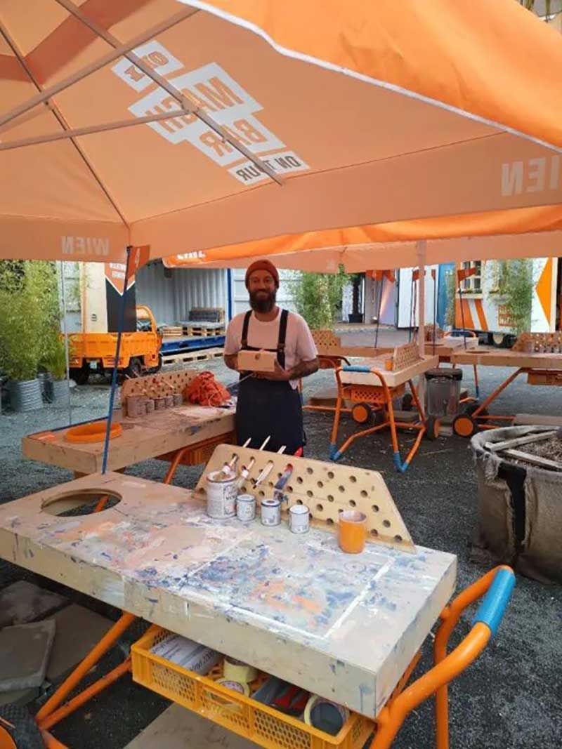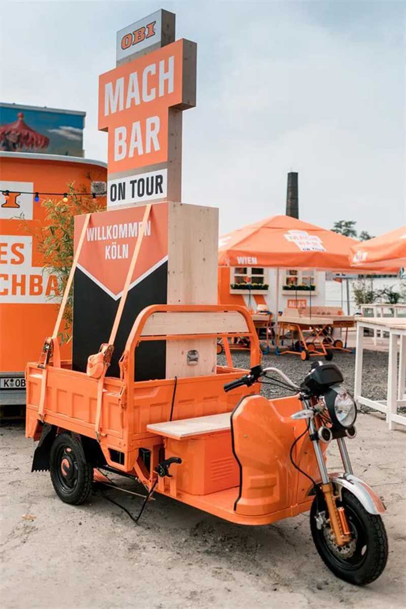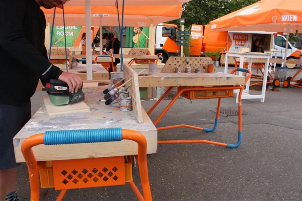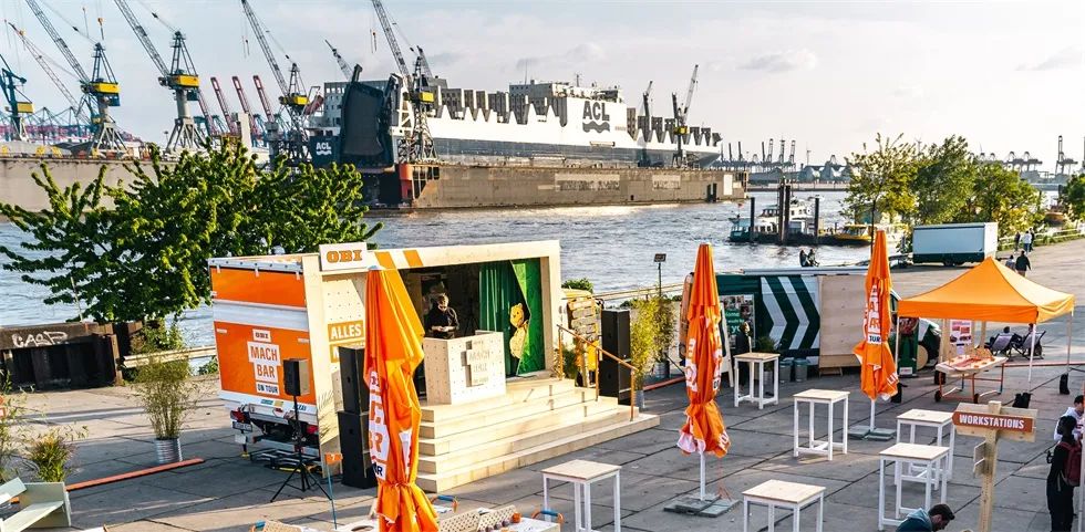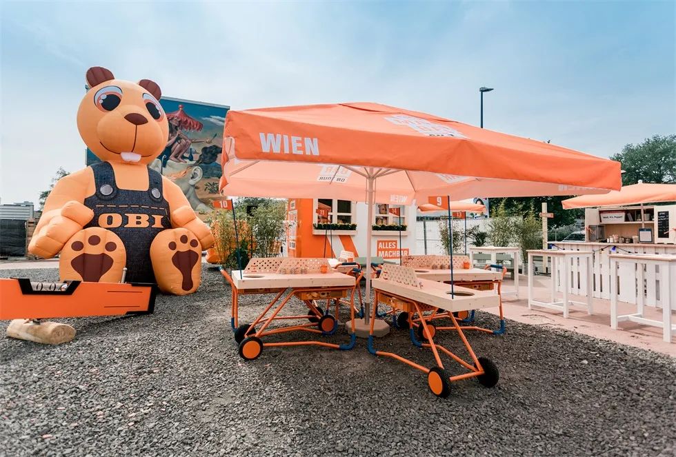 除了社交媒体活动,欧倍德(OBI)在德国和奥地利举行了巡回路演,活动中包含了DIY动手活动,产品展示等内容,活动不仅要告诉现场的客人“什么是可能”,而且要直接告诉他们。在那里,你会把DIY制作和轻松愉快联系起来。在城市中的节日活动现场,营造一个随意,让人心动的氛围,邀请路人逗留和自发加入。