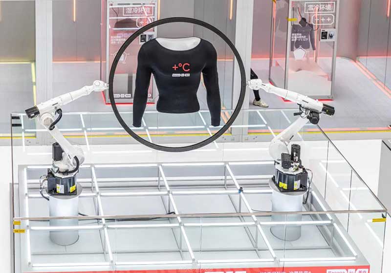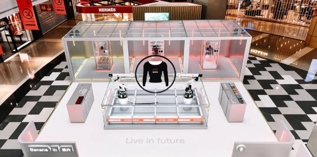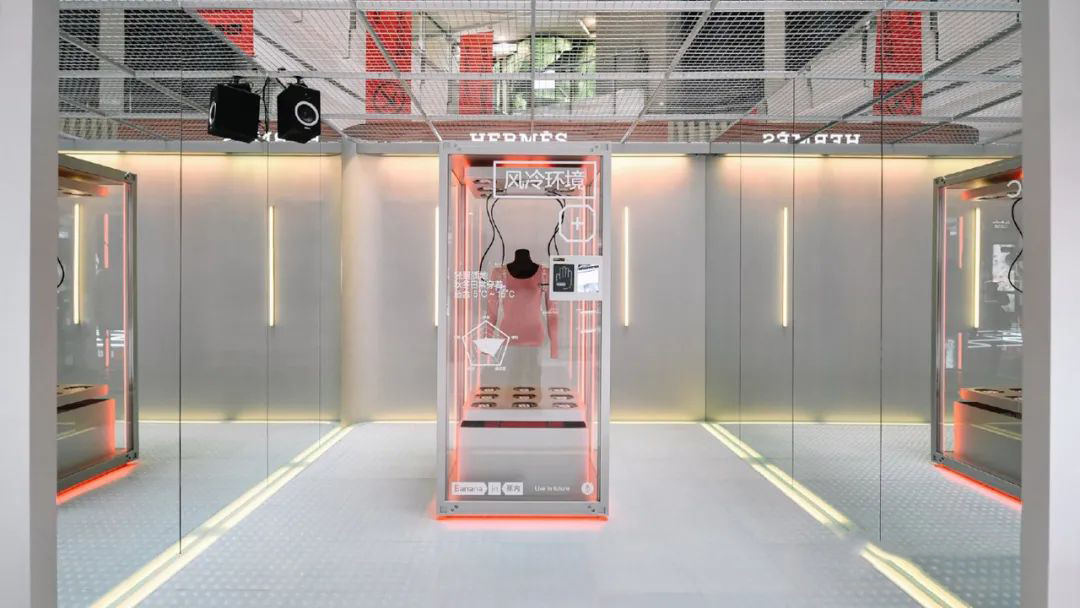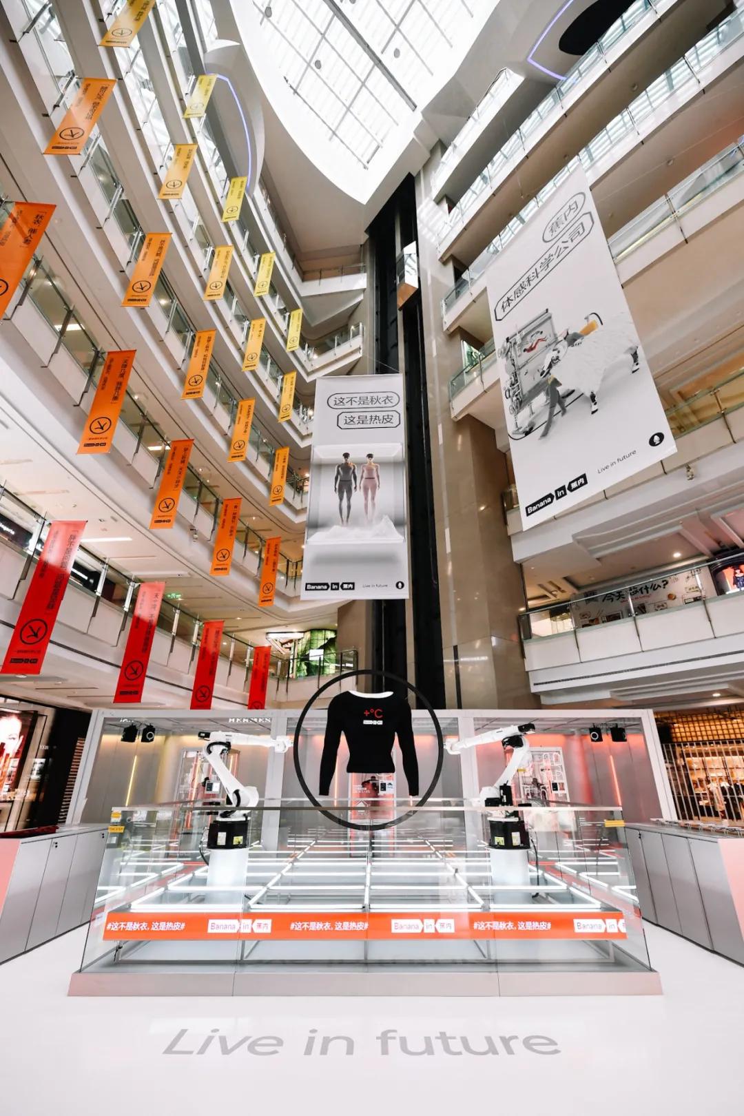 蕉内在来福士广场开了一间热皮实验室快闪,把科幻电影里的实验室,搬进你的现实世界——西部世界里的机械臂、镜像盗梦空间、风雨雪黑科技实验、热皮面料现场实感体验,有种在看电影的feel。这个快闪整体色调是银色的,很酷炫;以科技未来感为设计灵感,并将热皮元素融入快闪店设计,呈现出一个沉浸式互动体验实验室。