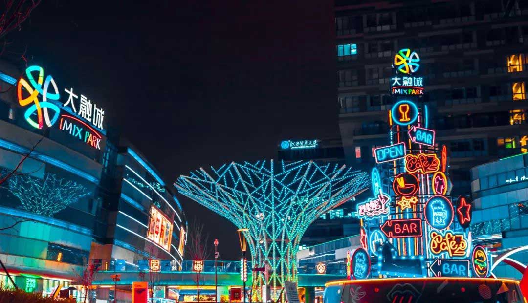 静安大融城携手网易云音乐联合举办2019-2010跨年特别企划静安热爱 “街区趣艺节”,色彩强烈碰撞的霓虹主题街区,童趣满满的霓虹玩偶,方正叠堆的大型色块,每个角落都是出片的绝佳点。
