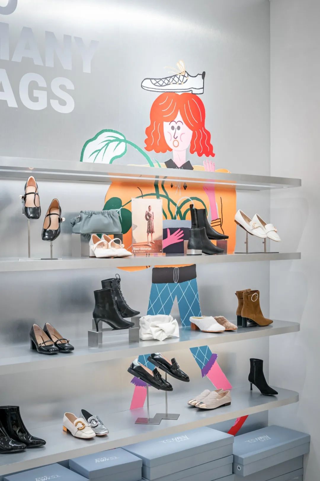 每个季度,TooManyShoes都会跟不同的艺术家跨界合作打造联名款,把艺术变成逛街的重要组成部分。这一次,TooManyShoes X 孙佳艺联名艺术pop-up店落户魔都,方寸之间,果然都是满满的惊喜。靓丽的橙黄色搭配淡雅炫目白,目之所及都被美鞋填满,墙上还铺着可爱又有童趣的艺术家联名插画,仿佛误入一间专属于鞋履的趣味博物馆。