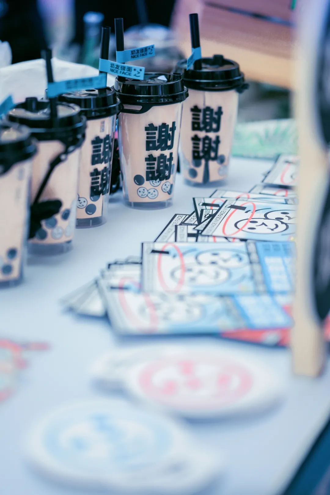 「 Nice Face 奶友碰面 — 东莞首届秋日奶茶节 」围绕「NiceFace奶友碰面」的概念,主视觉海报将「珍珠奶茶」和「笑脸」结合,进行拟人的视觉化转换。运用象征美丽梦幻的蓝色和热情活泼的红色,融合动态设计,使「珍珠」「笑脸」相碰撞,迸发呈现出更强烈的「碰面」观感。